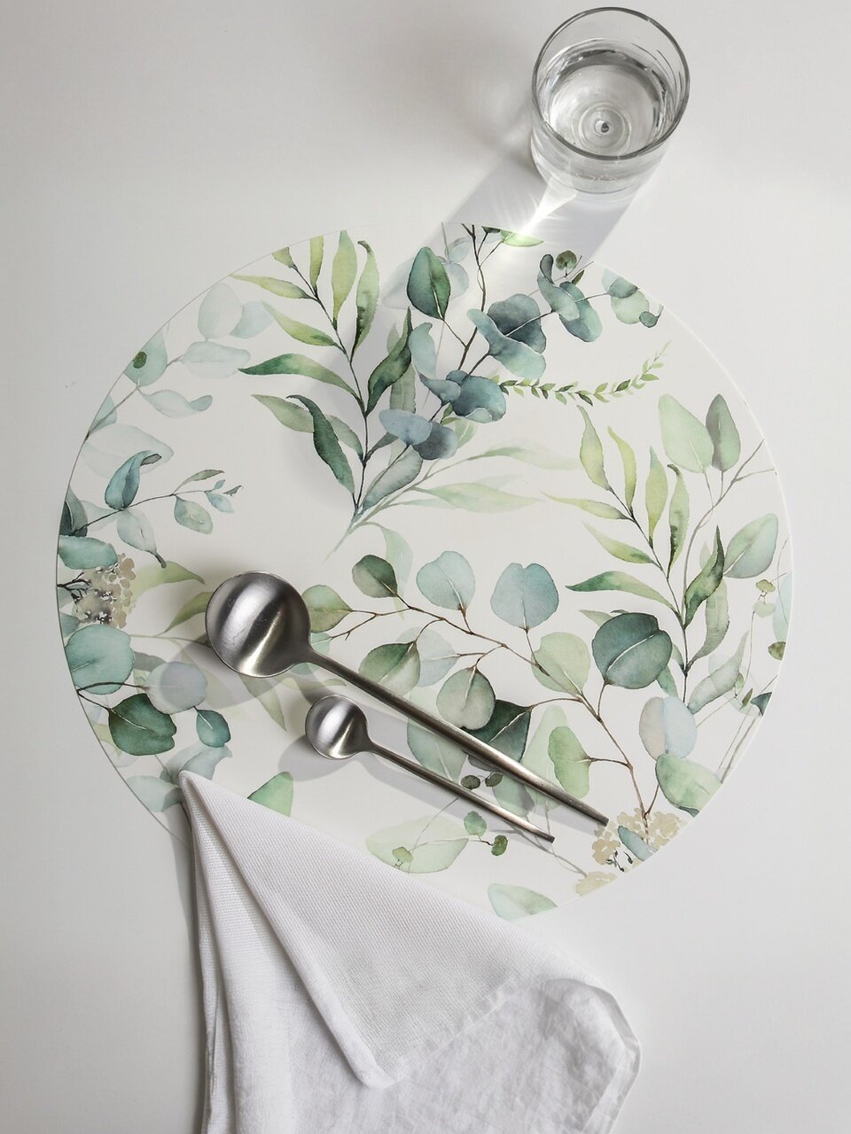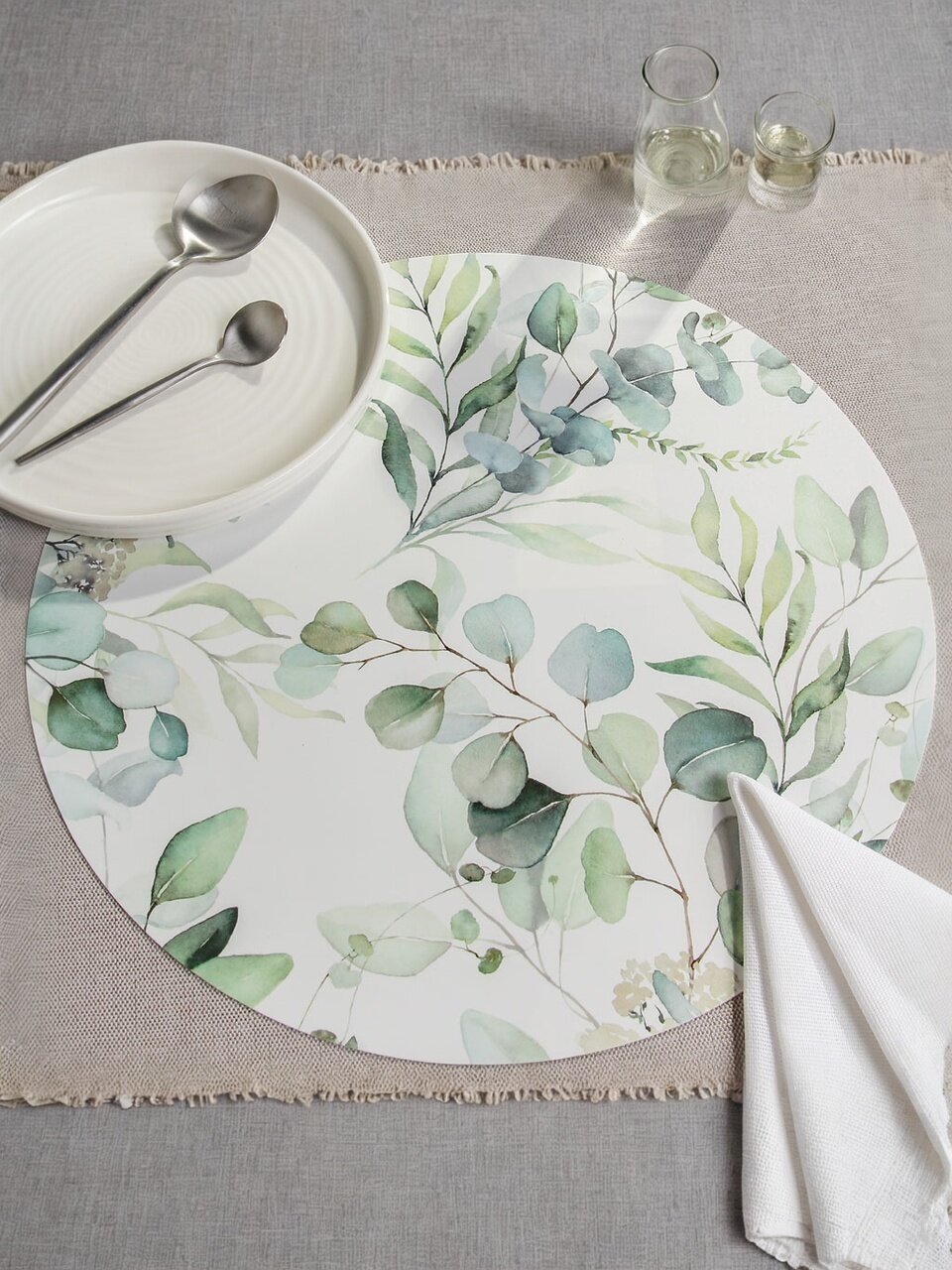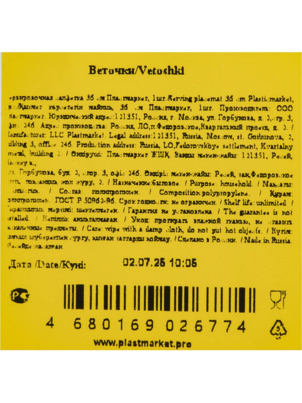 Круглая пластиковая салфетка 36х36 см с дизайном «Веточки» — стильная защита стола от пятен и царапин. Идеально для дома, дачи или подарка.