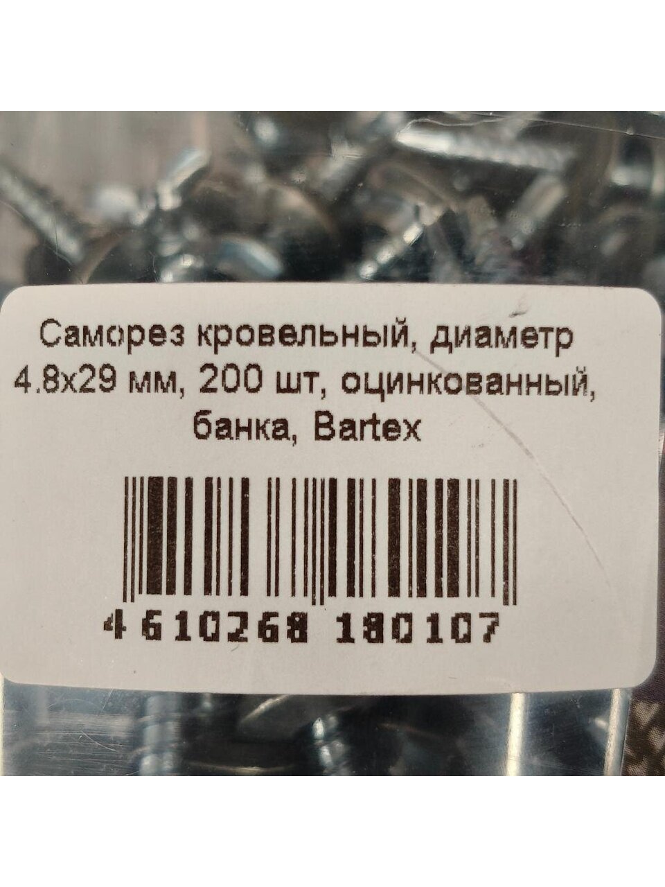 Вы можете приобрести «Саморез кровельный, диаметр 4.8х29 мм, 200 шт, оцинкованный, банка, Bartex» и другие товары в нашем интернет-магазине в Обнинске по низким ценам и с бесплатным самовывозом.