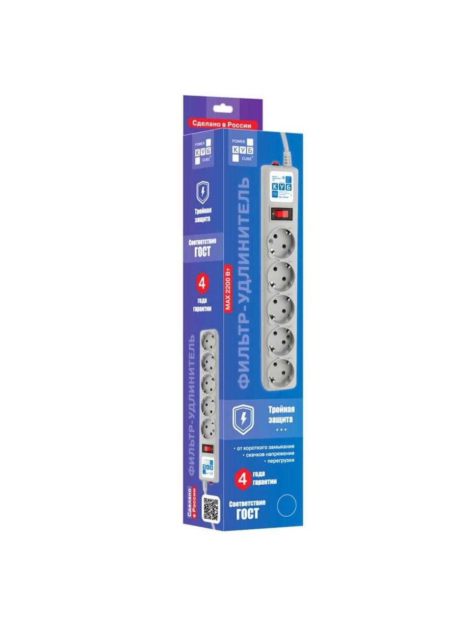 Вы можете приобрести «Сетевой фильтр 5 гнезд, 1.9 м, 3х0.75 мм², с заземлением, 2.2 кВт, Power Cube, 330019» и другие товары в нашем интернет-магазине в Казани по низким ценам и с бесплатным самовывозом.