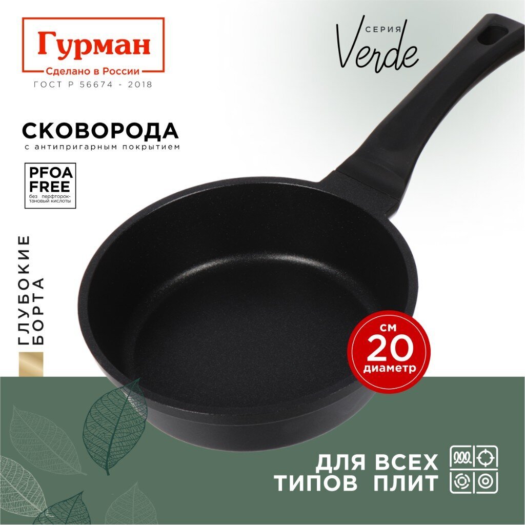 Вы можете приобрести «Сковорода литой алюминий, 20 см, антипригарное покрытие, Гурман, Verde, черная, индукция, ГМ2001 ВИ» и другие товары в нашем интернет-магазине в Железногорске по низким ценам и с бесплатным самовывозом.