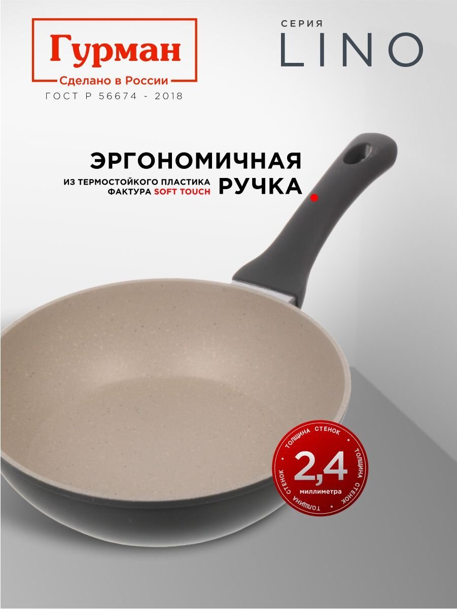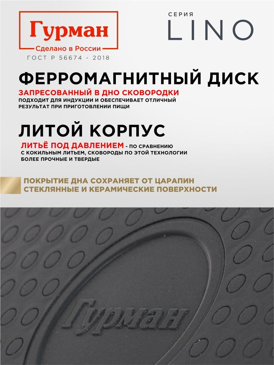 Сковорода литой алюминий 24 см Гурман Lino: антипригарное покрытие PFLUON, подходит для индукции. Гарантия 36 мес — идеальный выбор для дома и дачи.