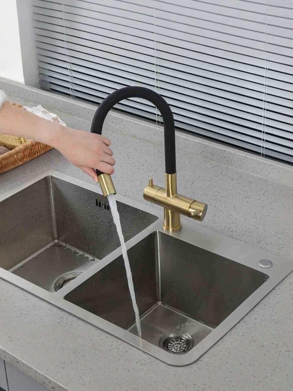 Смеситель Gappo G4398-33 — это современное решение для кухни, где важны не только стиль, но и функциональность. Благодаря гибкому изливу высотой 25 см и длиной 22 см, вы легко сможете мыть даже крупную посуду или наполнять высокие кастрюли. Модель оснащена переключателем на фильтр, что позволяет получать чистую воду прямо из-под крана — это актуально для семей, заботящихся о здоровье, и для тех, кто ищет, какой смеситель выбрать для фильтрации воды.