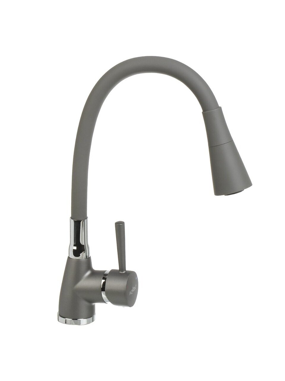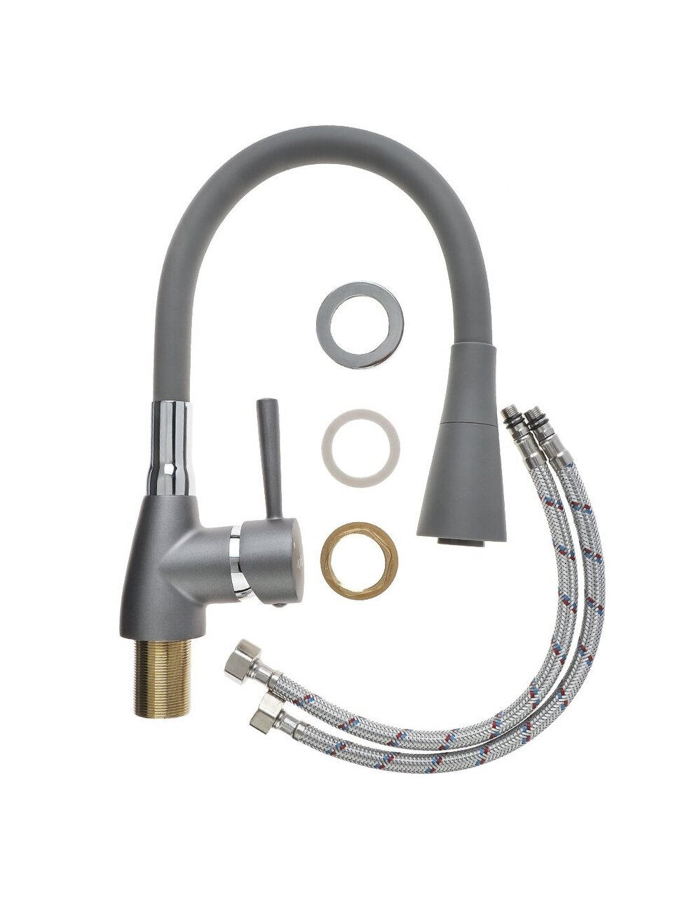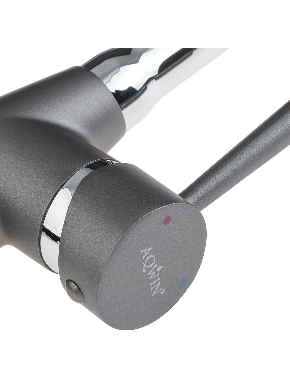 Смеситель для кухни Aqwin с гибким изливом и керамическим картриджем: стильный графит, 2 режима струи, удобство и защита от излома — оптимальный выбор для дома и дачи.