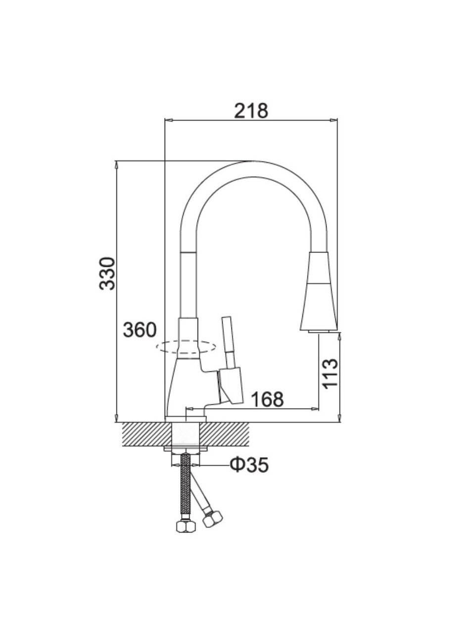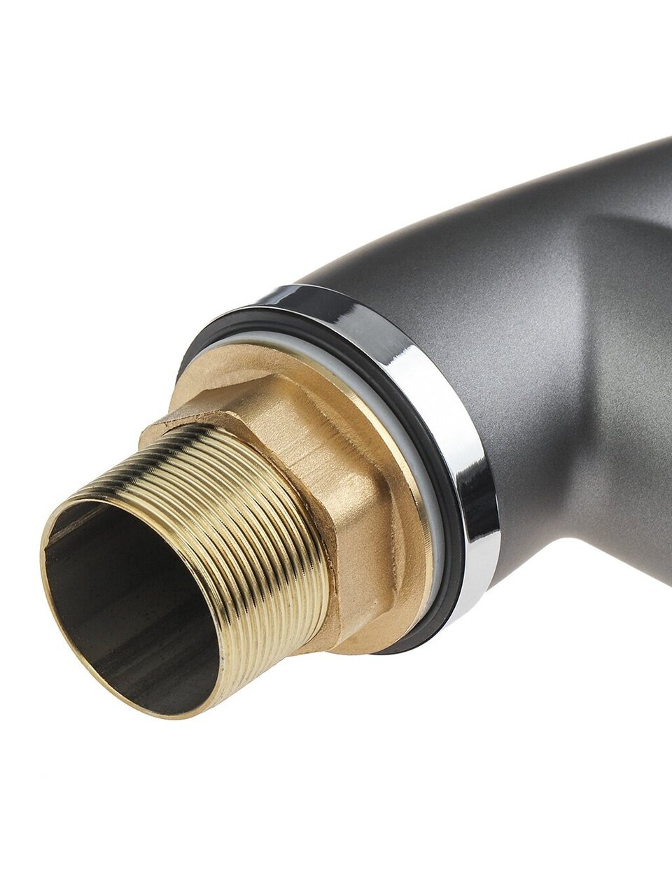 - Гибкий излив с защитой от излома — легко направлять струю в любую точку мойки, удобно мыть крупную посуду.