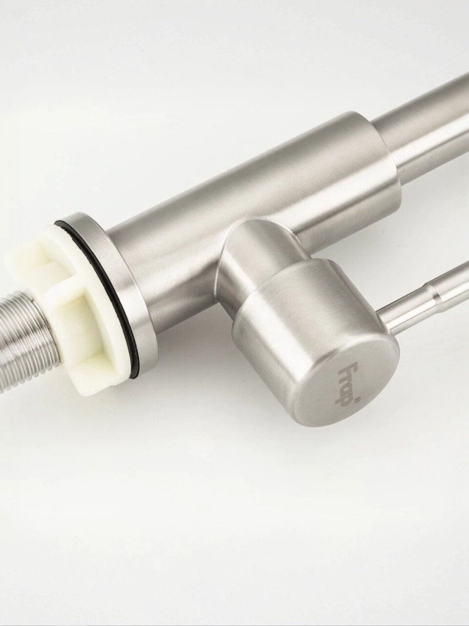Смеситель для кухни Frap F41899-6: нержавеющая сталь, сатиновая поверхность, вентильное управление — долговечное решение для чистой воды и стильного интерьера.