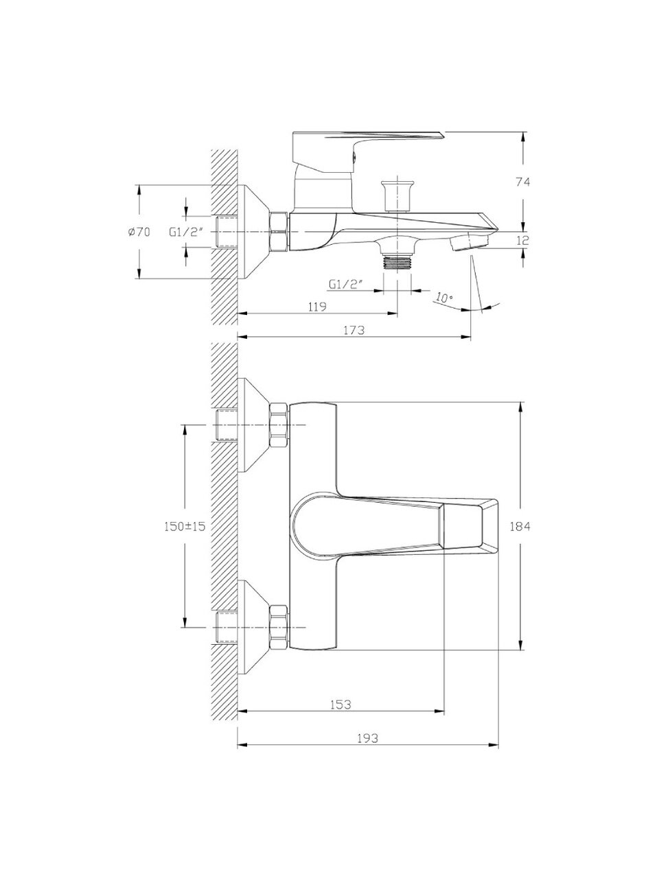 Rossinka RS28-31 с коротким монолитным изливом и компактными размерами идеально подходит для небольших ванных комнат. Его вертикальное настенное крепление и межосевое расстояние 150 мм обеспечивают легкий монтаж даже в стеснённых условиях.