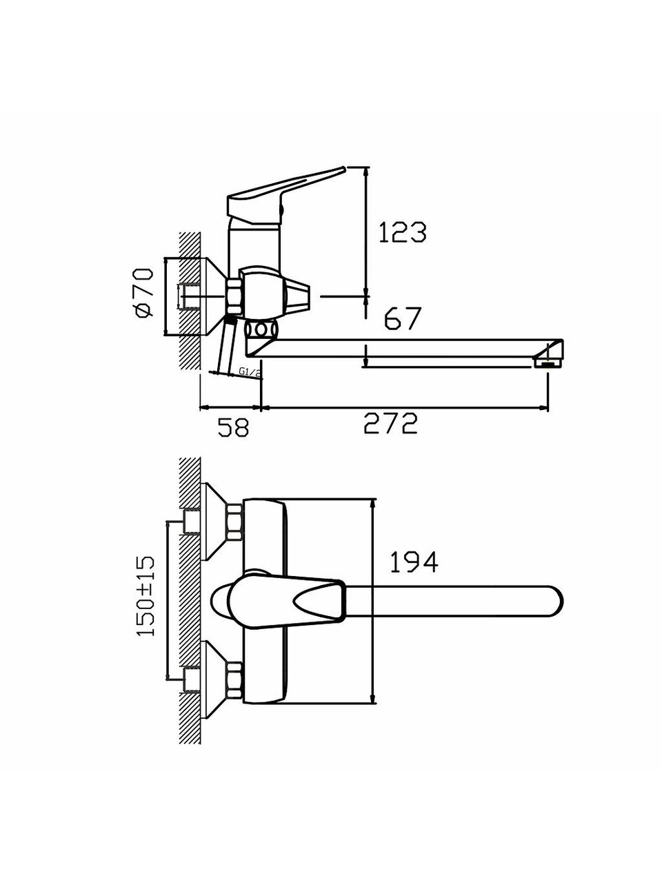 Да, модель рассчитана на стандартное межосевое расстояние 150 мм и крепится на 2 отверстия. Подходит для большинства типовых ванных комнат с настенным подключением (шланг 1/2").