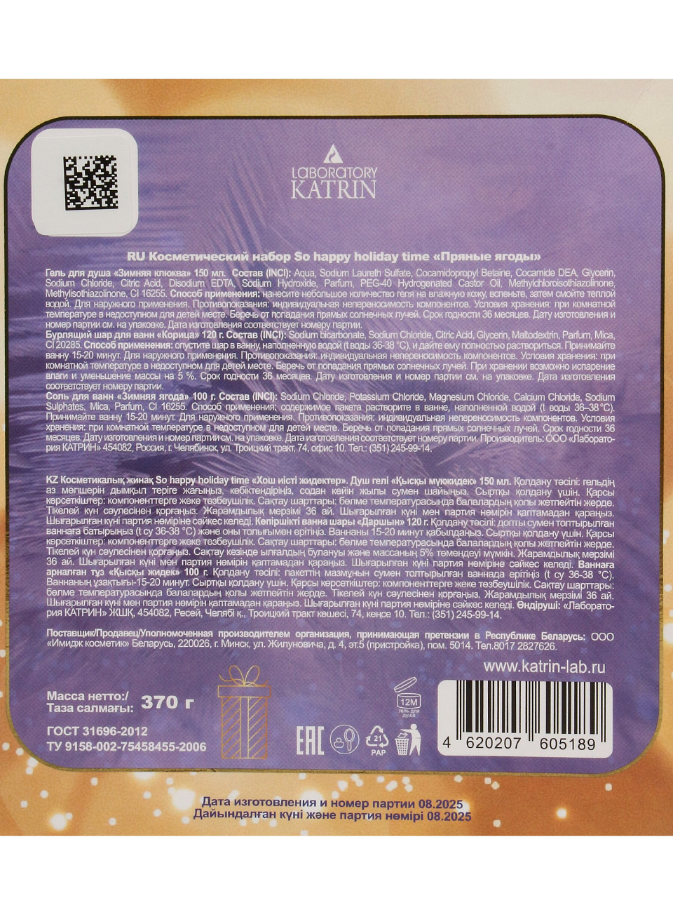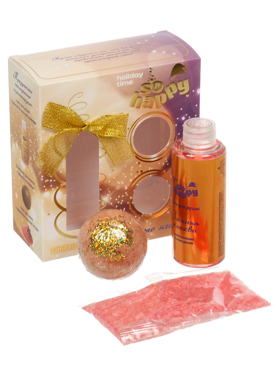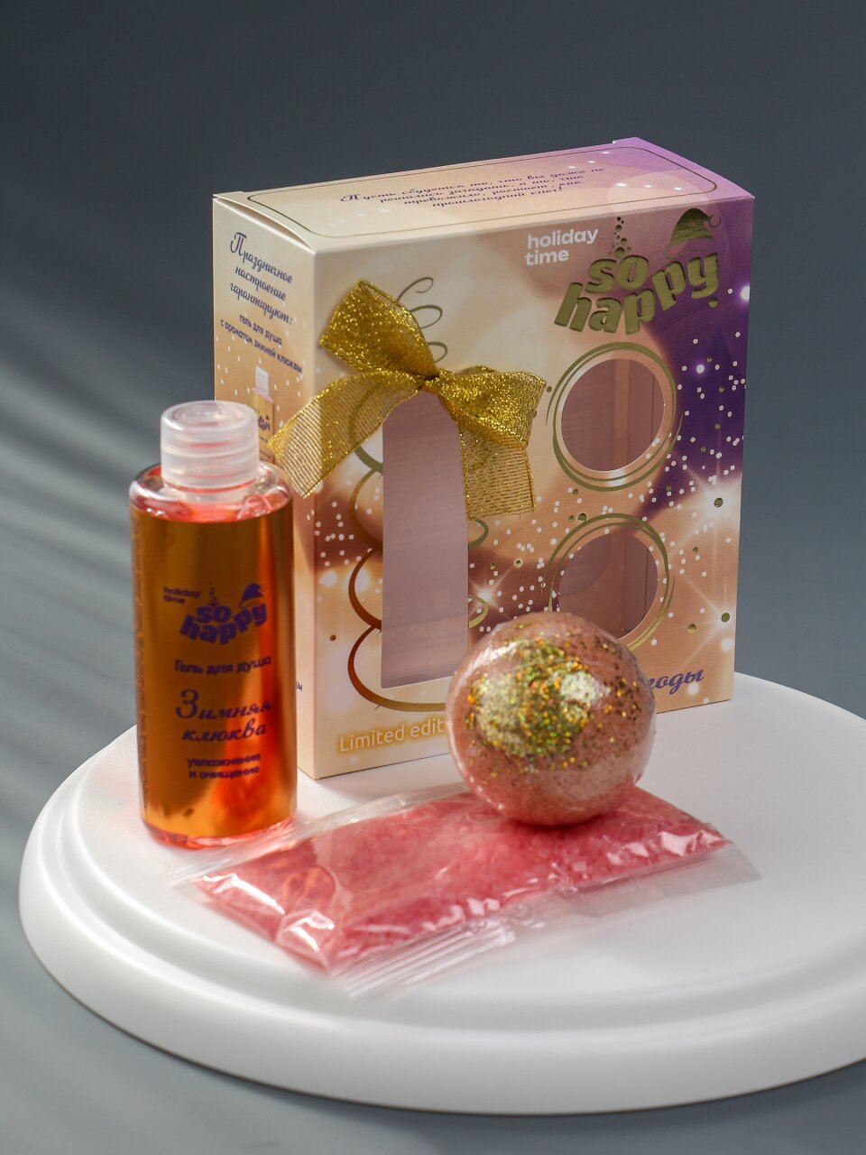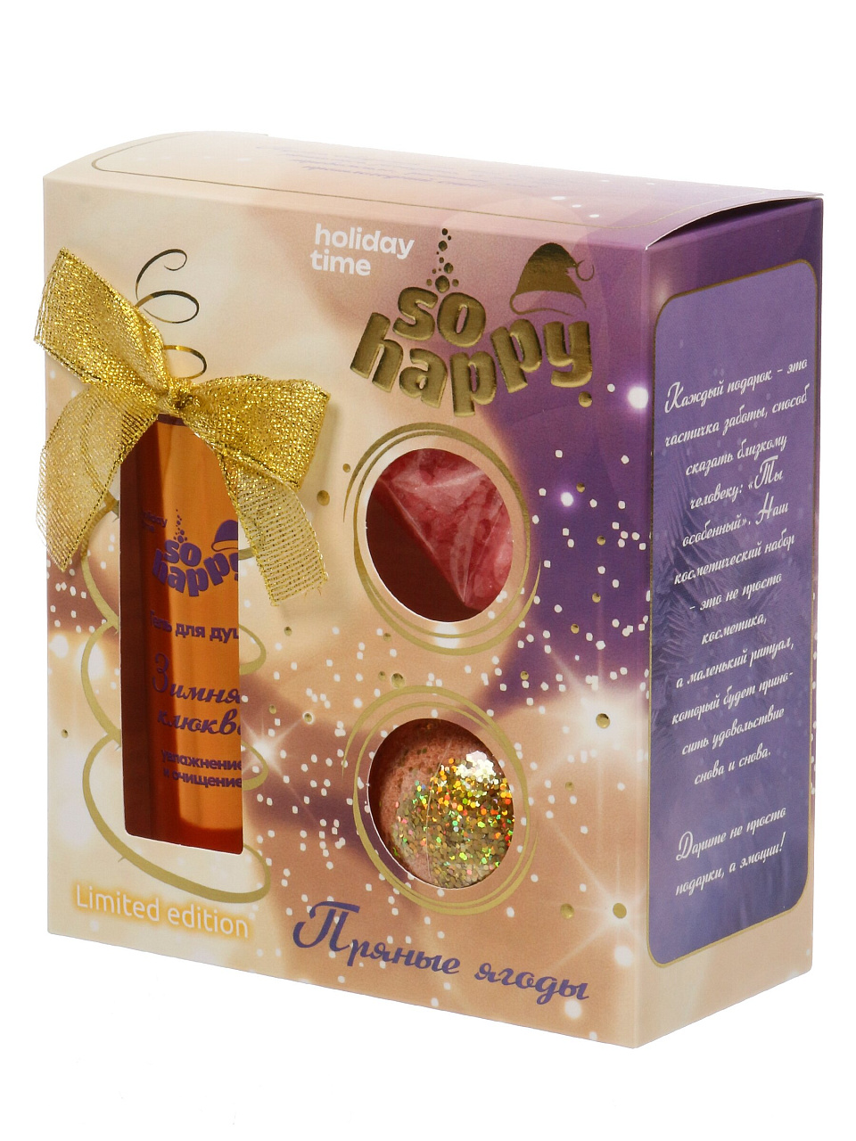 Погрузитесь в атмосферу праздника: набор бурлящих шаров для ванны So Happy holiday time, Пряные ягоды, 370 г — расслабление, уход и яркие эмоции в одном подарке.