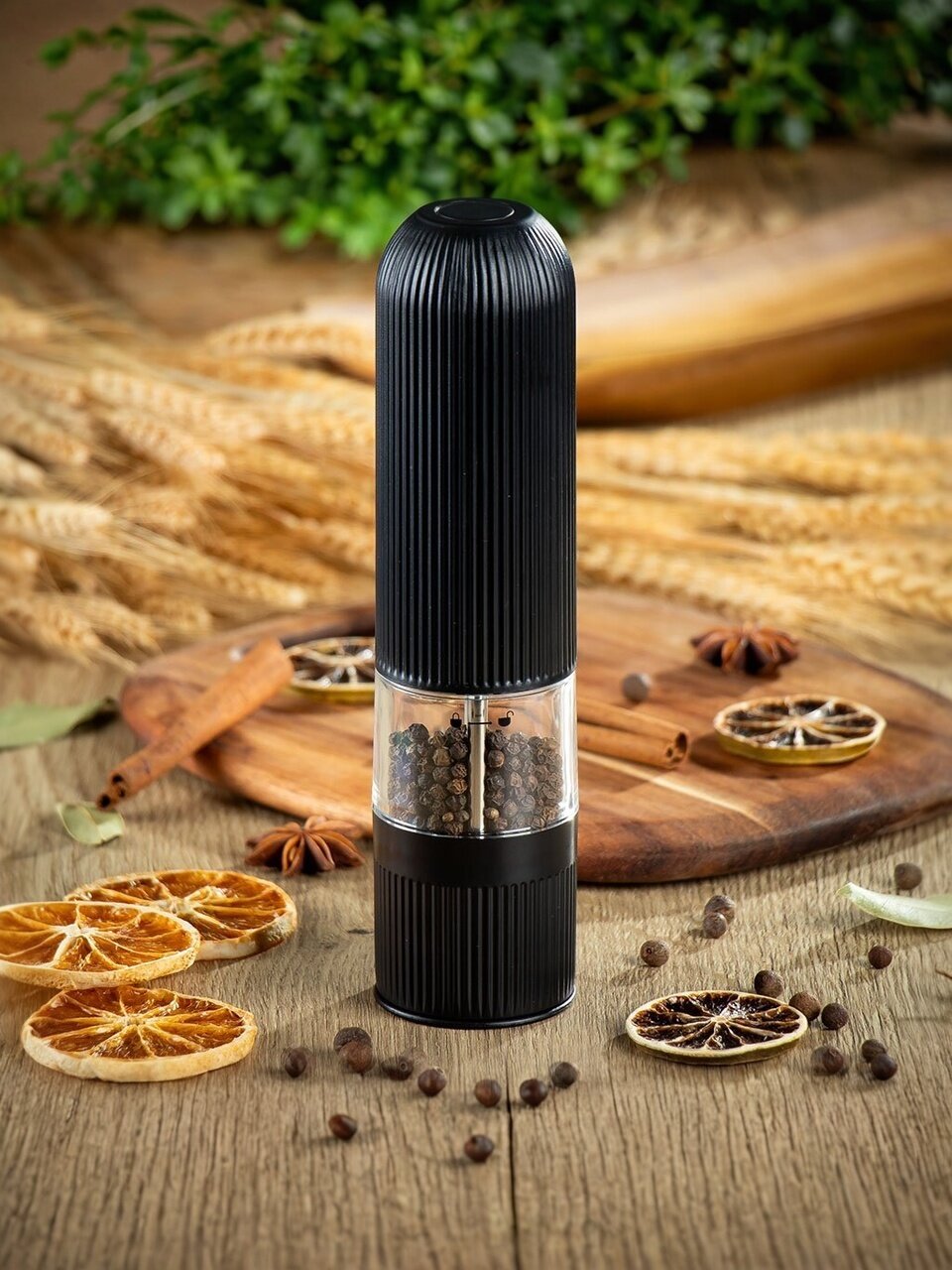 - С электрической мельницей для специй ваши приправы будут готовы быстро и легко одним нажатием на кнопку.
