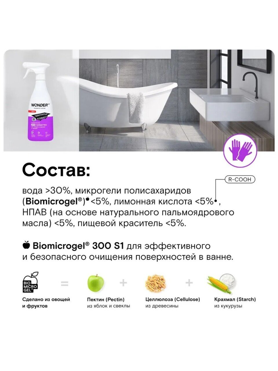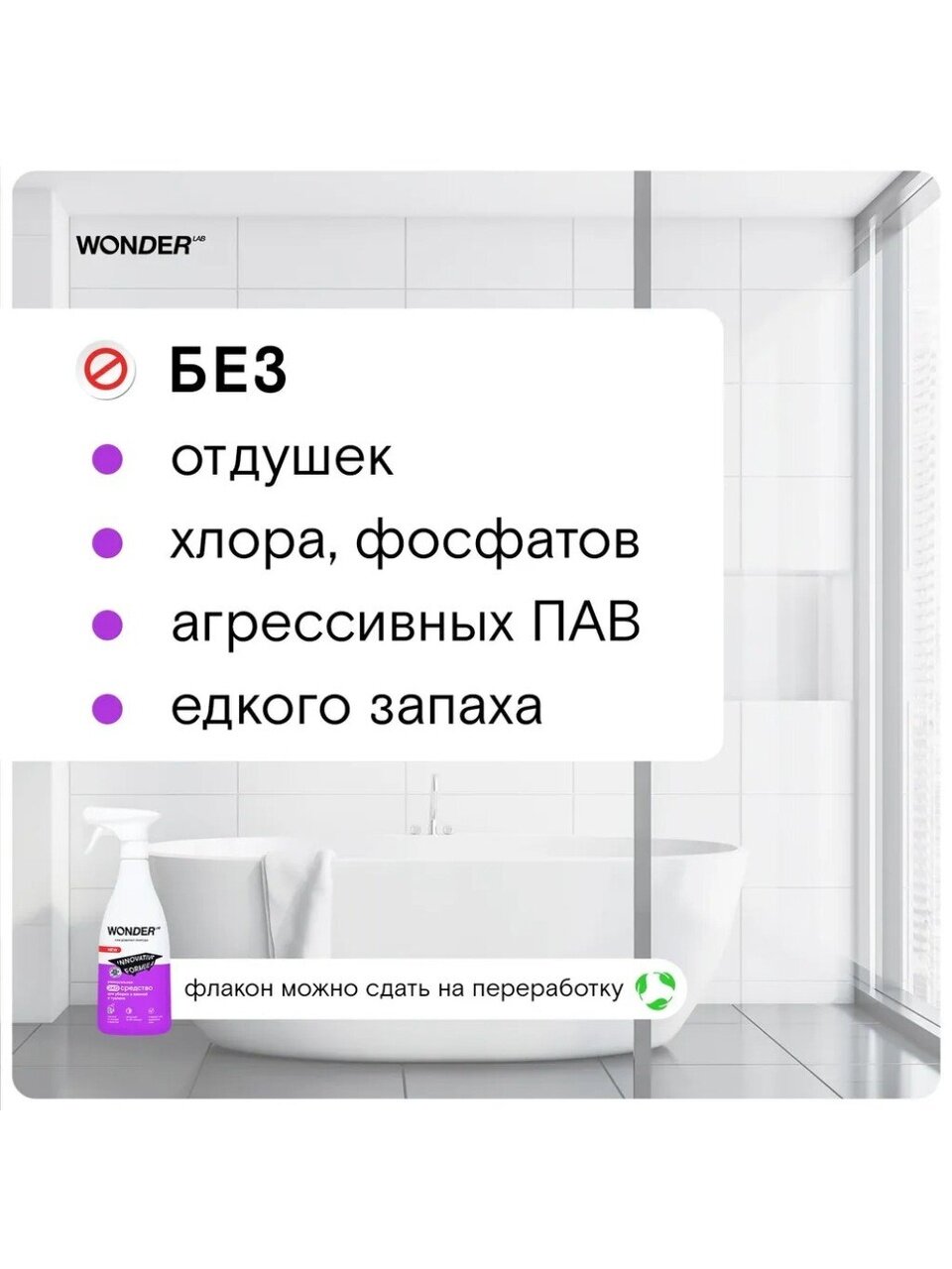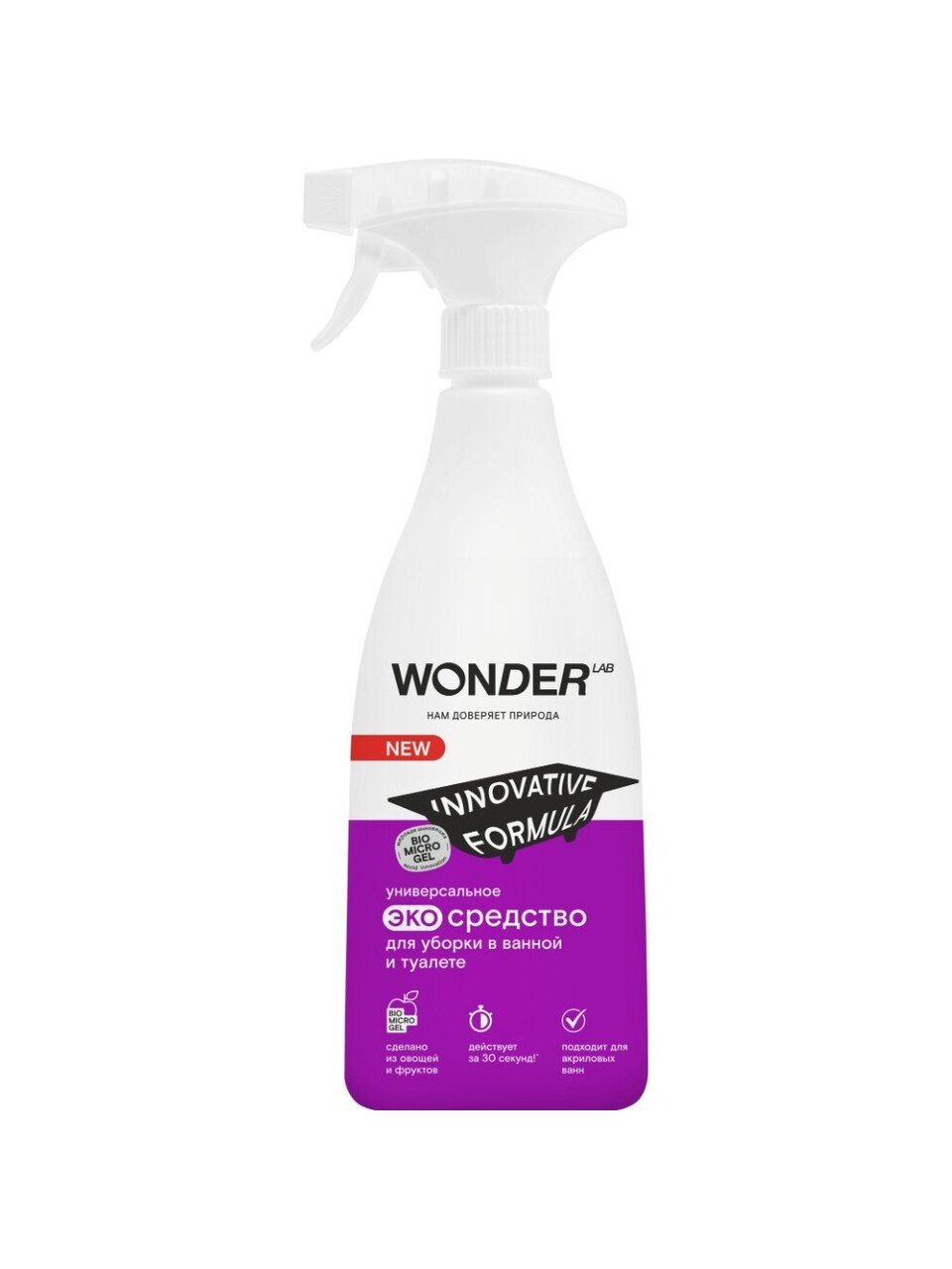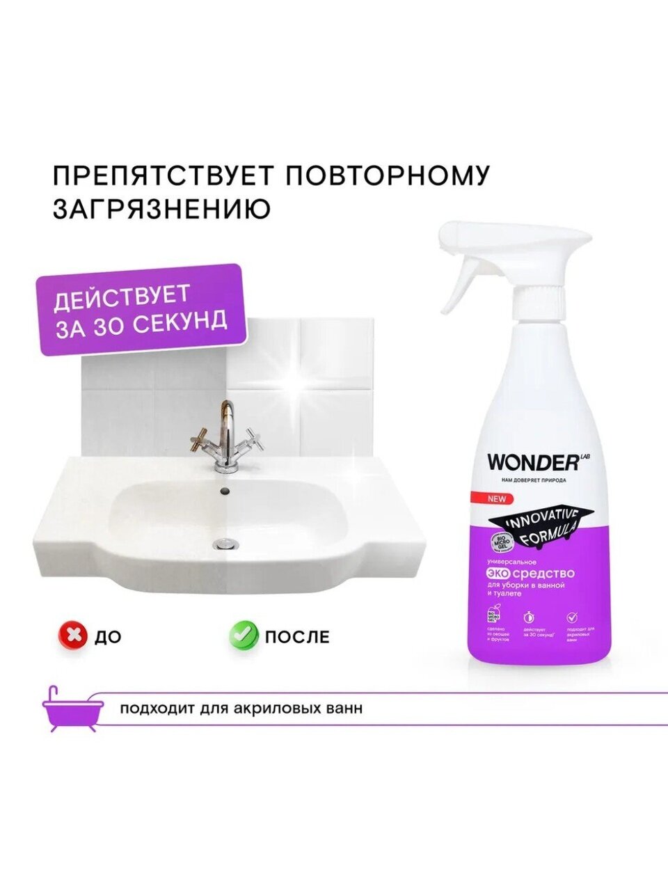 Спрей для уборки в ванной комнате Wonder Lab бережно и эффективно удаляет любые типы загрязнений.