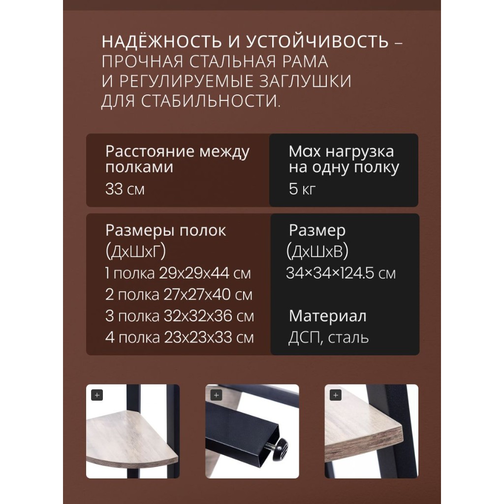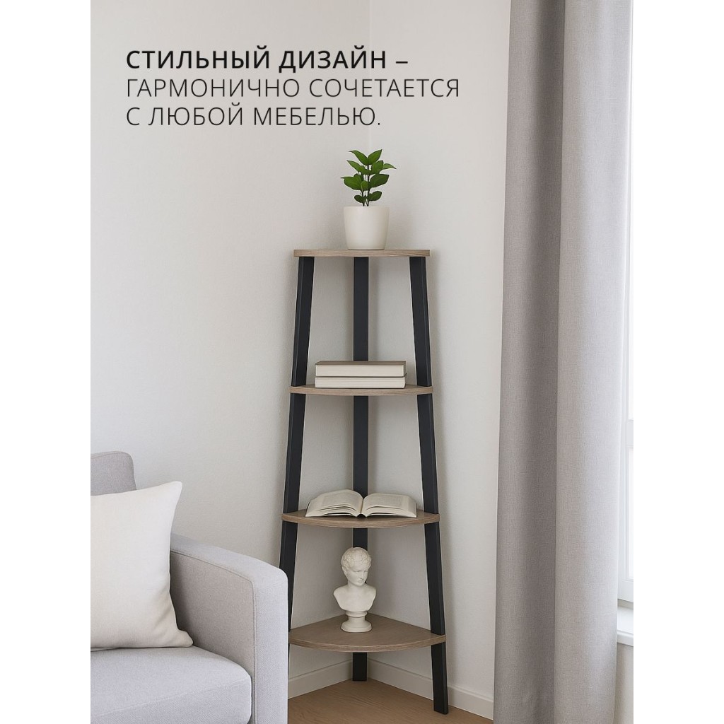 4-уровневые открытые полки: веерообразные полки обеспечивают достаточно места, в то же время полностью используя угловое пространство, что идеально подходит для хранения любых предметов, которые вы хотите показать.