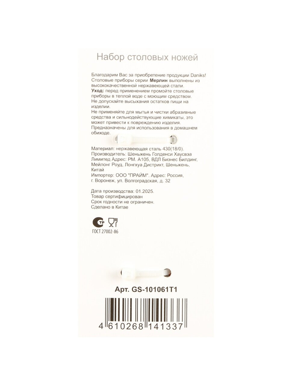 Закажите столовые ножи Daniks Мерлин по выгодной цене с быстрой доставкой — добавьте стиль и практичность вашему столу уже сегодня.