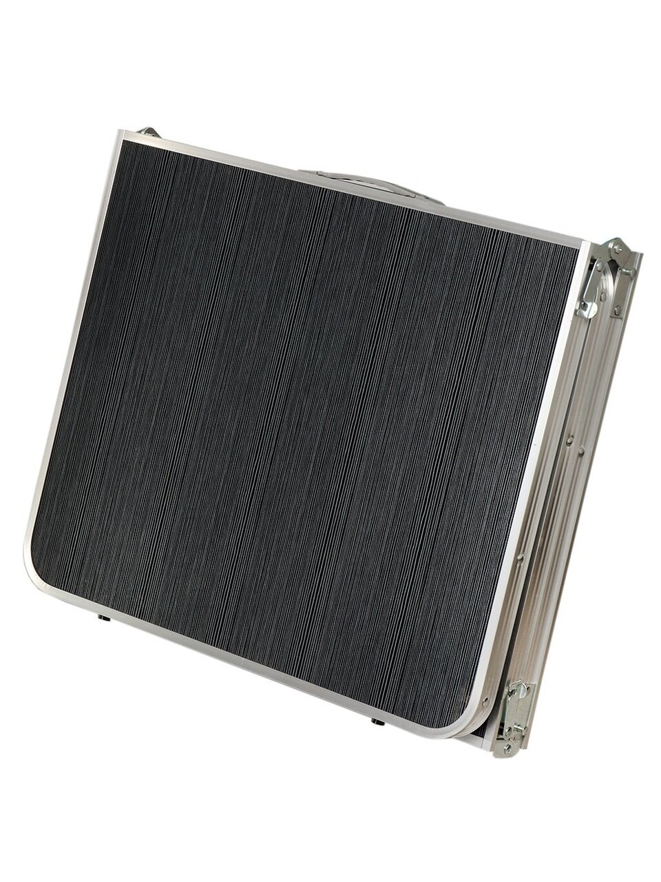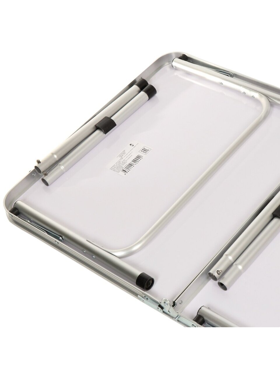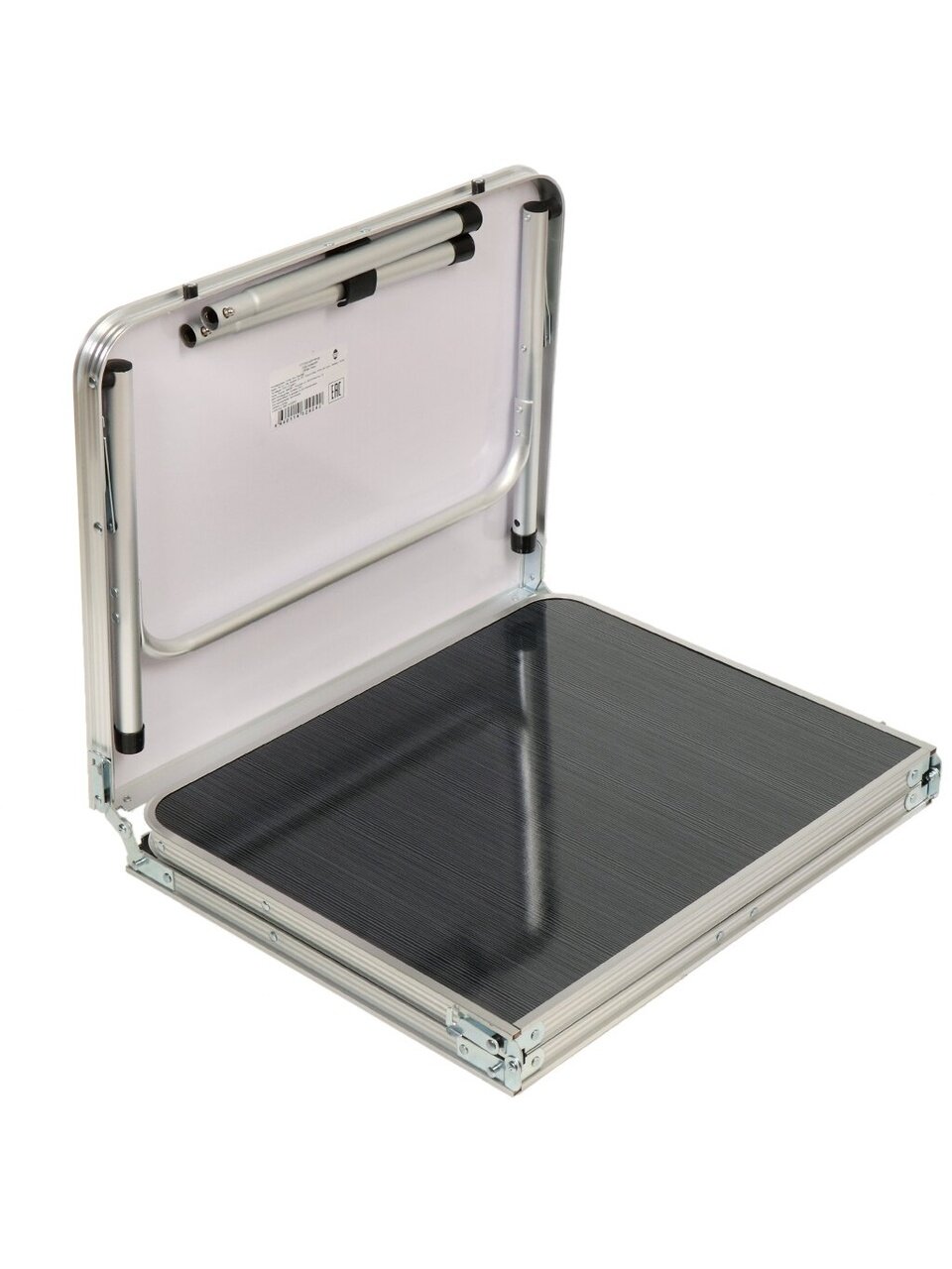 Стол имеет алюминиевый корпус и столешницу из МДФ. Алюминиевые модели столов очень практичны. Этот материал легкий, но очень прочный. Конструкция способна прослужить много лет при аккуратном обращении. Максимальная нагрузка состовляет 30 кг. МДФ не выделяет вредных веществ и неприятного запаха даже при нагревании и не впитывает воду. Ножки стола прорезинены.