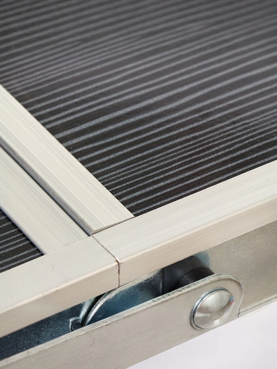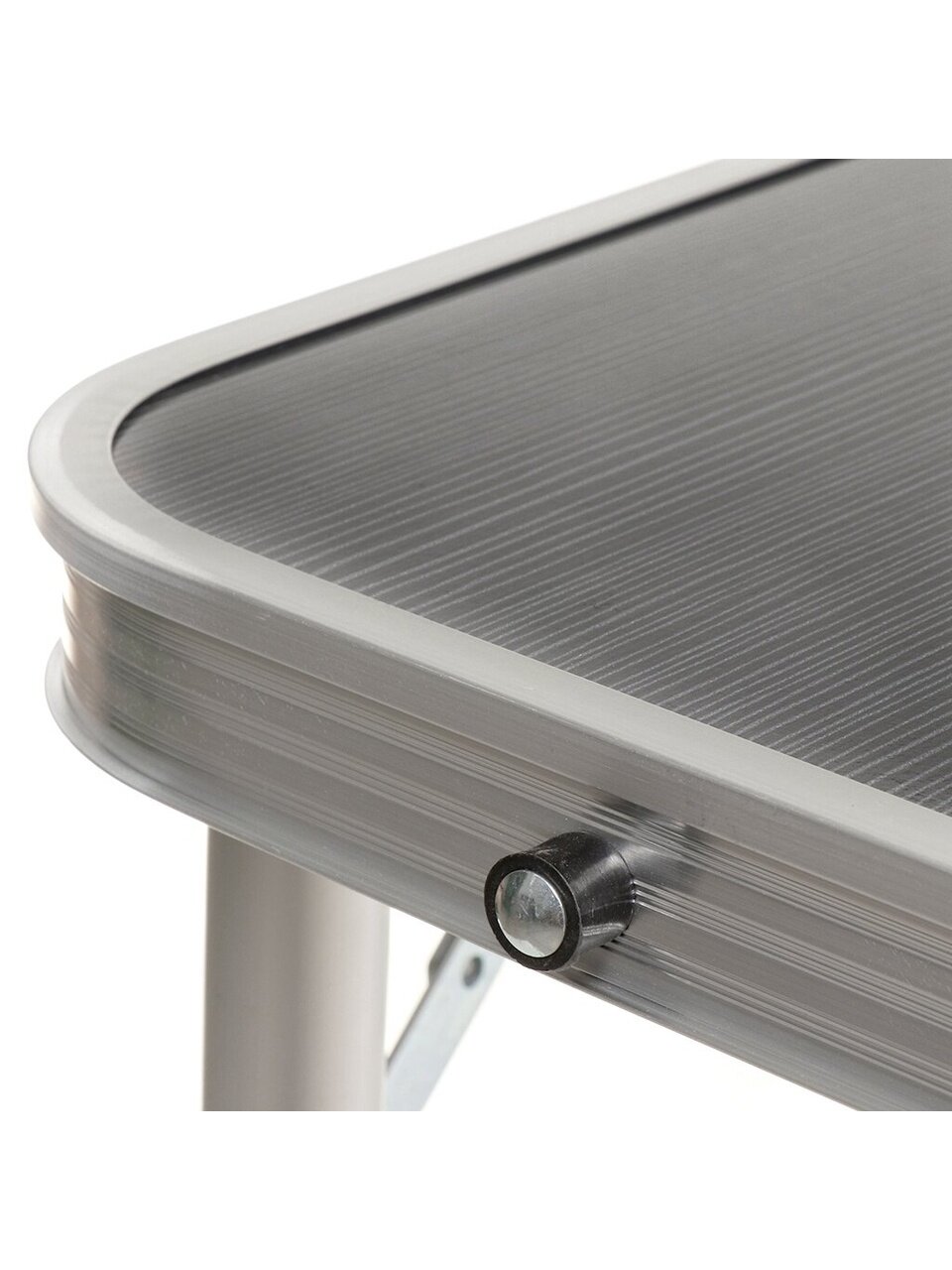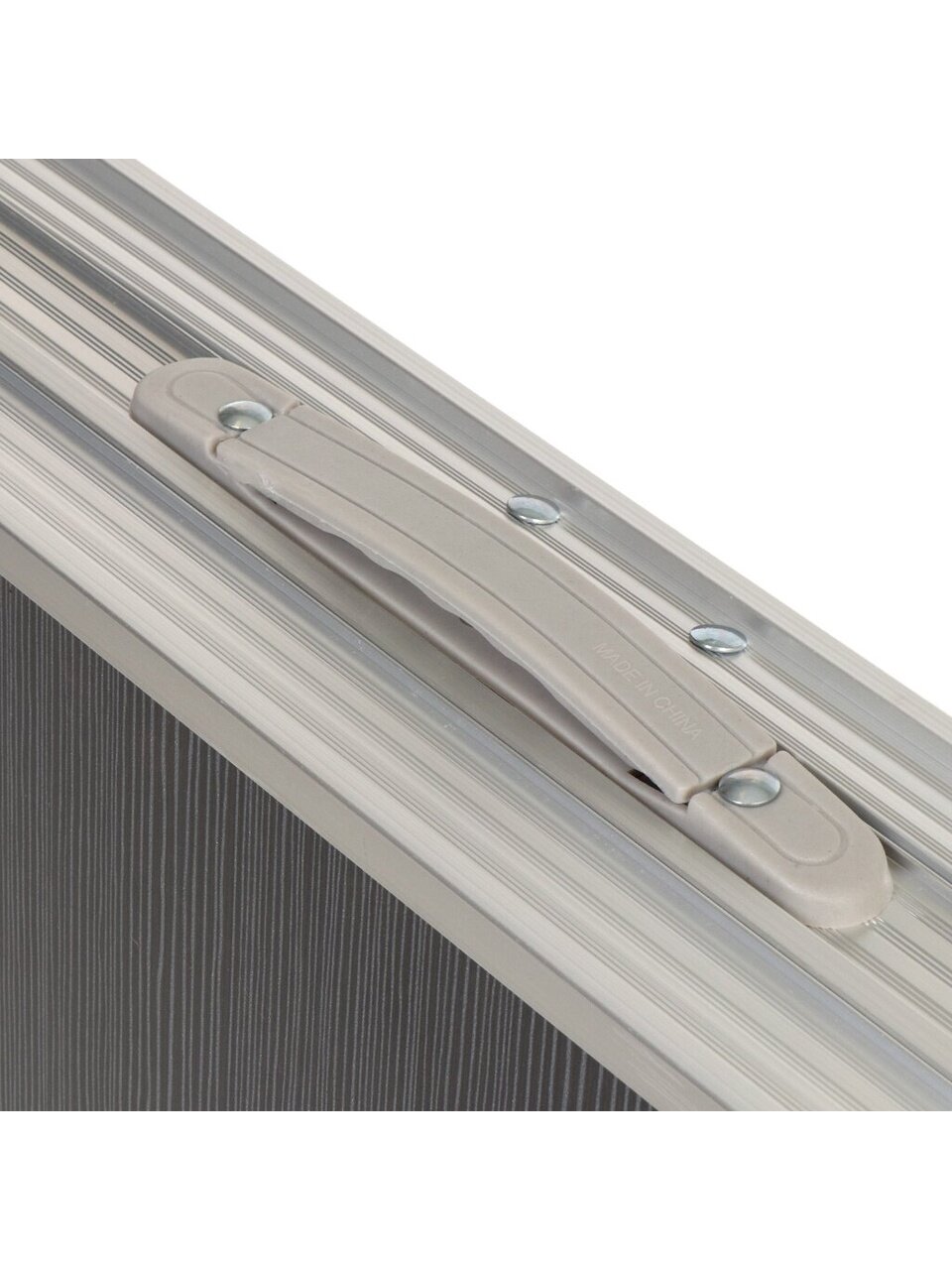 Стол имеет алюминиевый корпус и столешницу из МДФ. Алюминиевые модели столов очень практичны. Этот материал легкий, но очень прочный. Конструкция способна прослужить много лет при аккуратном обращении. Максимальная нагрузка состовляет 30 кг. МДФ не выделяет вредных веществ и неприятного запаха даже при нагревании и не впитывает воду. Ножки стола прорезинены.
