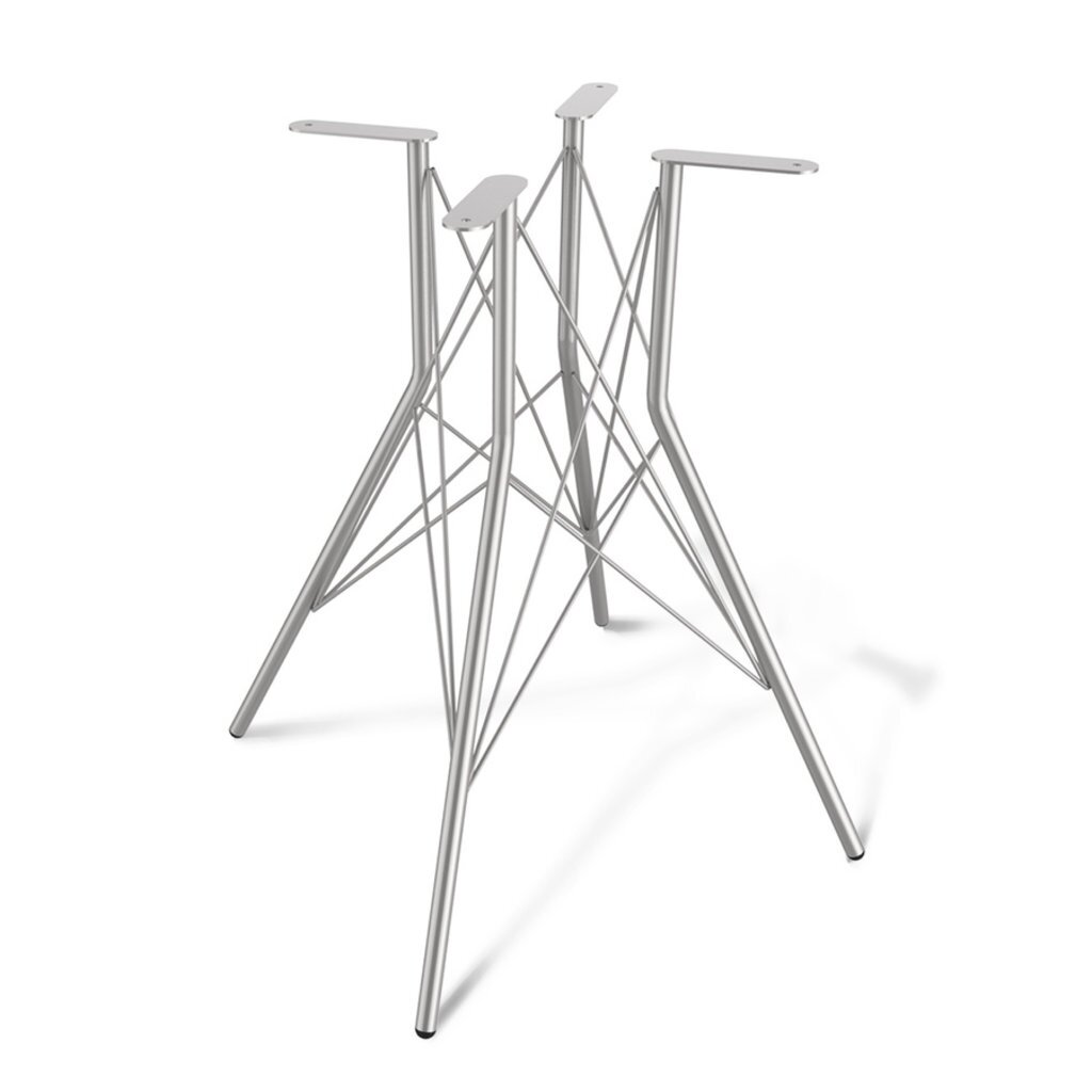 - Изящные металлические ножки соединены прутьями, которые вносят в образ утонченность и обеспечивают его прочность.