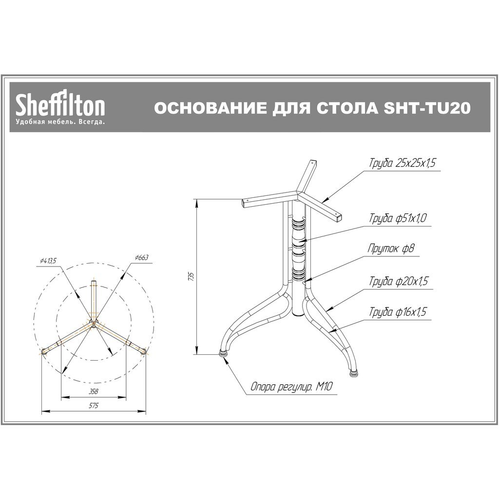 - Подстолье выполнено из формованной металлической трубы, диаметром 51 мм.