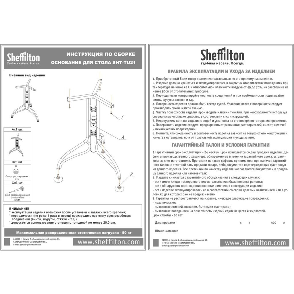 Подстолье выполнено из формованной металлической трубы, диаметром 51 мм.