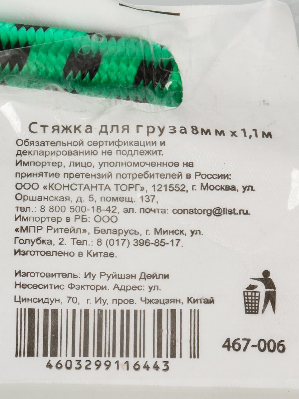 Стяжка для груза 8 мм x 1.1 м — безопасная перевозка и хранение вещей без лишних хлопот. Удобный размер, прочность, универсальность — решение для дома и дачи.