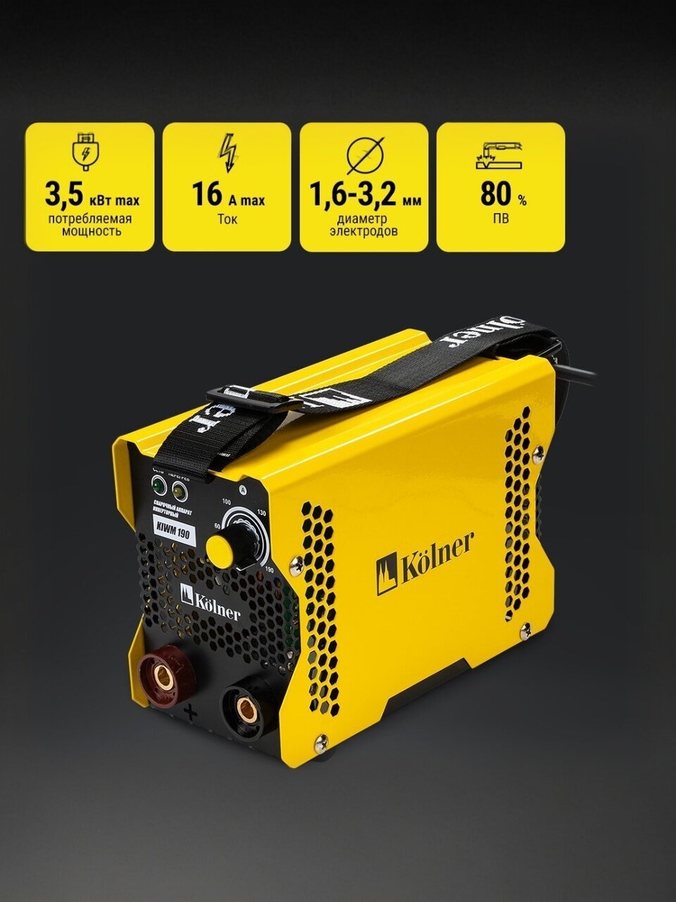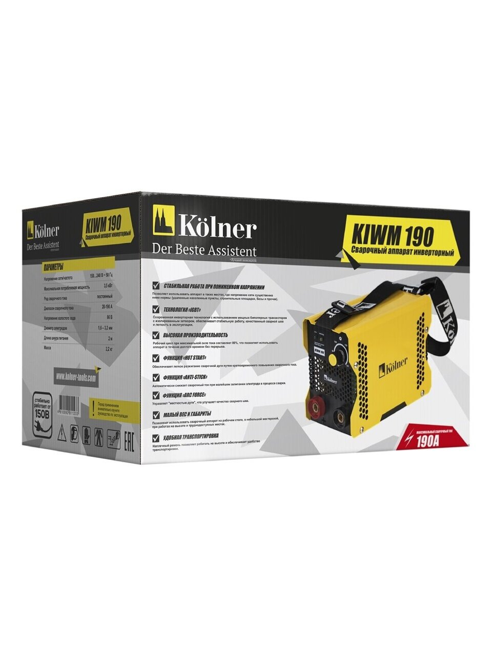 Вы можете приобрести «Сварочный аппарат инверторный, Kölner, KIWM 190, 3.5 кВт, 190 А, электрод, дуговой, ПВ 80 %» и другие товары в нашем интернет-магазине в Краснодаре по низким ценам и с бесплатным самовывозом.