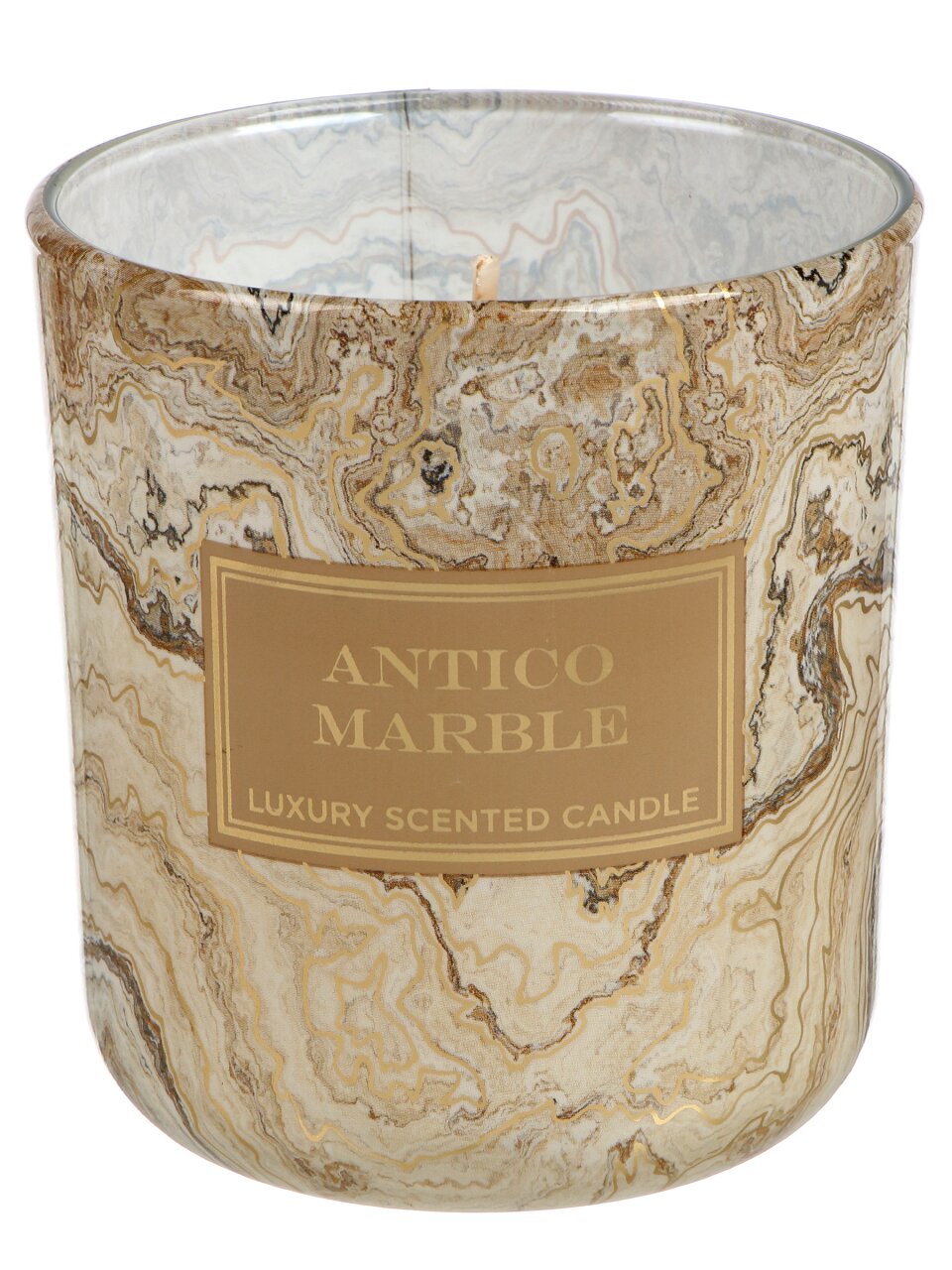 Свеча ароматизированная Bartek Candles «Мрамор Золотой и Антико» — стильный подарок и уют для дома: 150 г, хлопковый фитиль, подарочная упаковка, премиум-дизайн.
