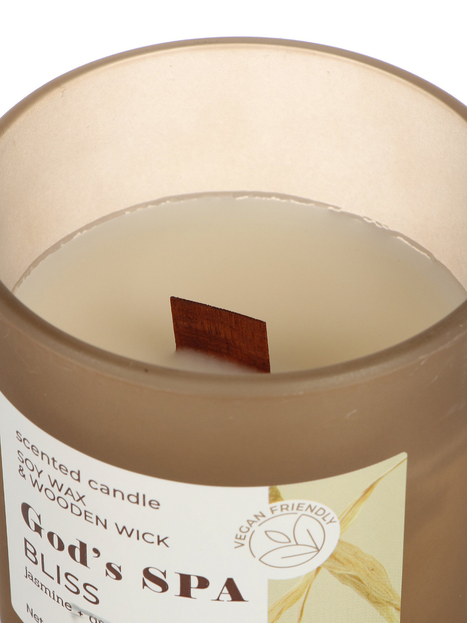Высота 9 см, ширина 8 см, диаметр 8 см. Объём воска — 150 г. В составе соевый воск и парафин, деревянный фитиль, свеча в стакане, цвет бежевый. Производство — Польша.
