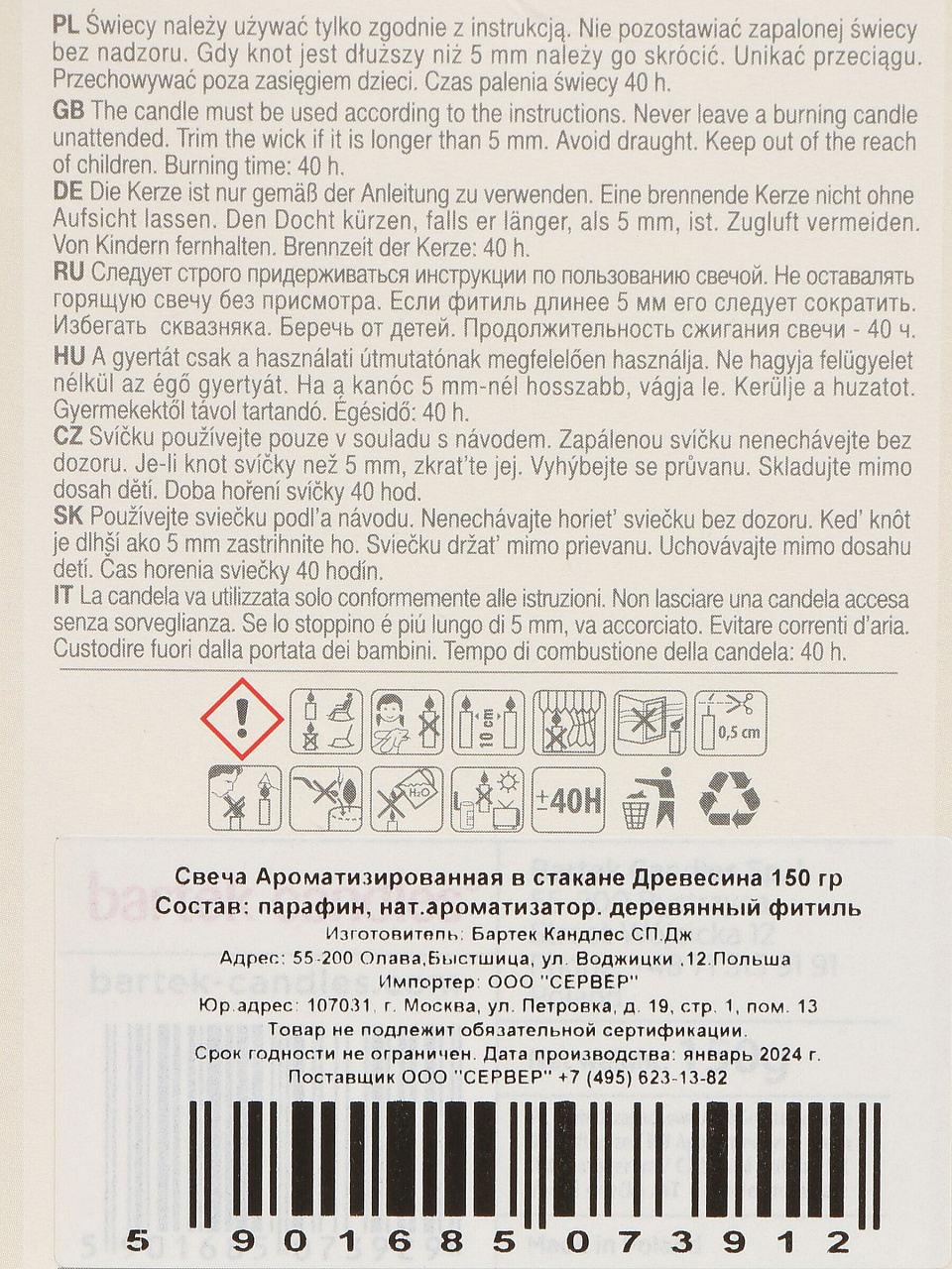 Подарите себе или близким атмосферу уюта: оформите заказ прямо сейчас и получите стильную свечу Bartek Candles с гарантией качества и быстрой доставкой.