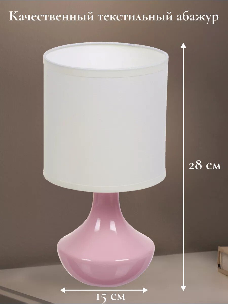 Светильник настольный E14 с белым абажуром и розовой арматурой станет не только функциональным источником света, но и стильным элементом декора. Керамика отличается долговечностью и легкостью ухода, а текстильный абажур легко заменяется при необходимости. Благодаря декоративному стилю лампа подойдет для создания уюта в любом помещении, подчеркнет индивидуальность и добавит ярких акцентов. Элегантное сочетание белого и розового цветов гармонирует с разными оттенками мебели и текстиля.