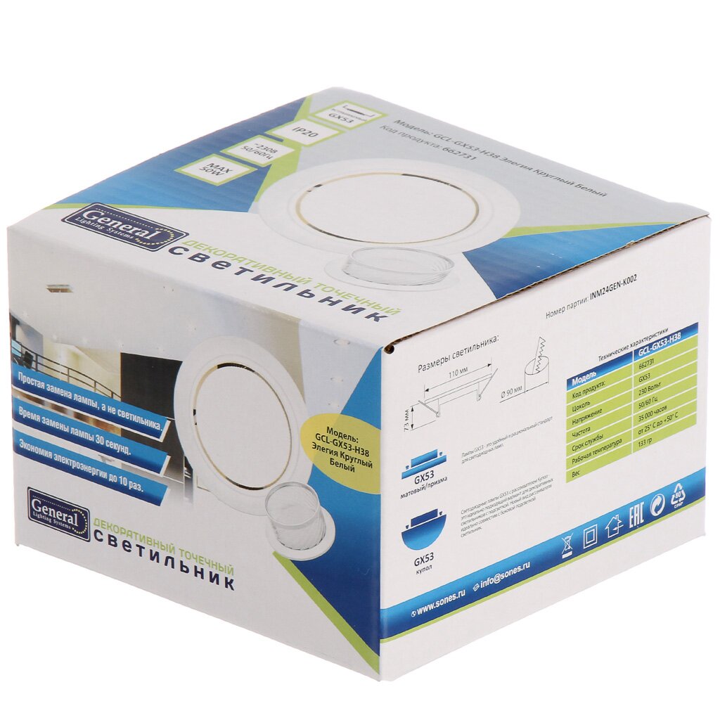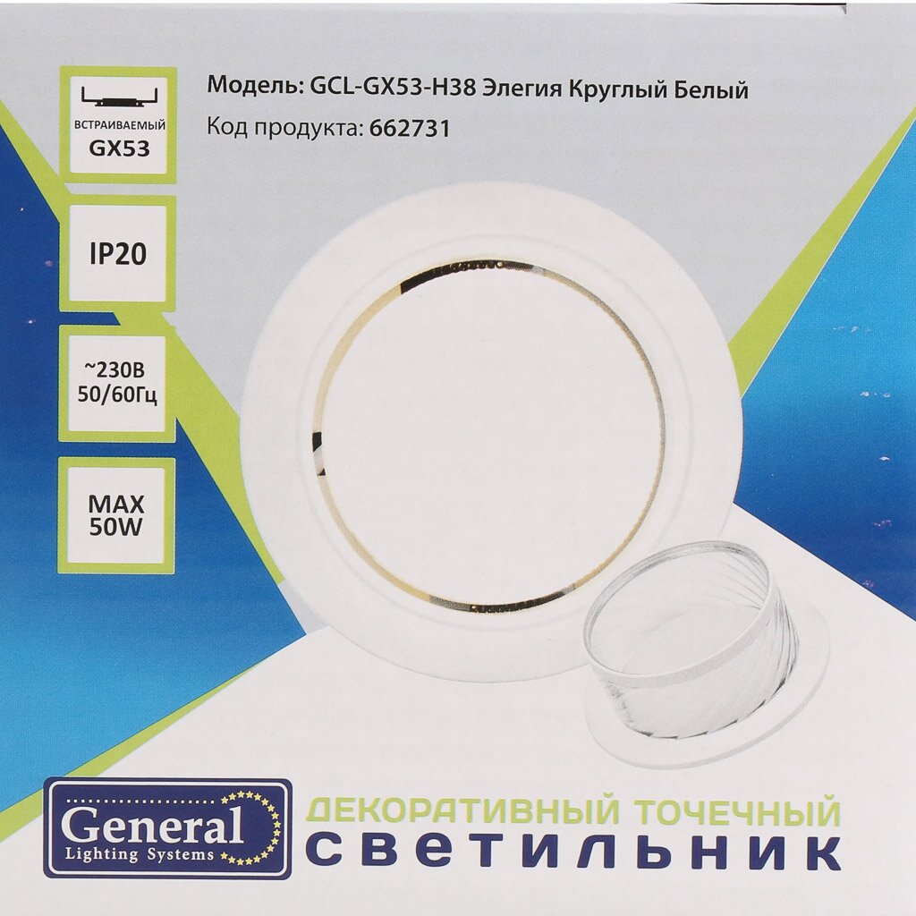Вы можете приобрести «Светильник встраиваемый Элегия, GX53, круглый, белый, General Lighting Systems, GCL-GX53-H38» и другие товары в нашем интернет-магазине в Иваново по низким ценам и с бесплатным самовывозом.