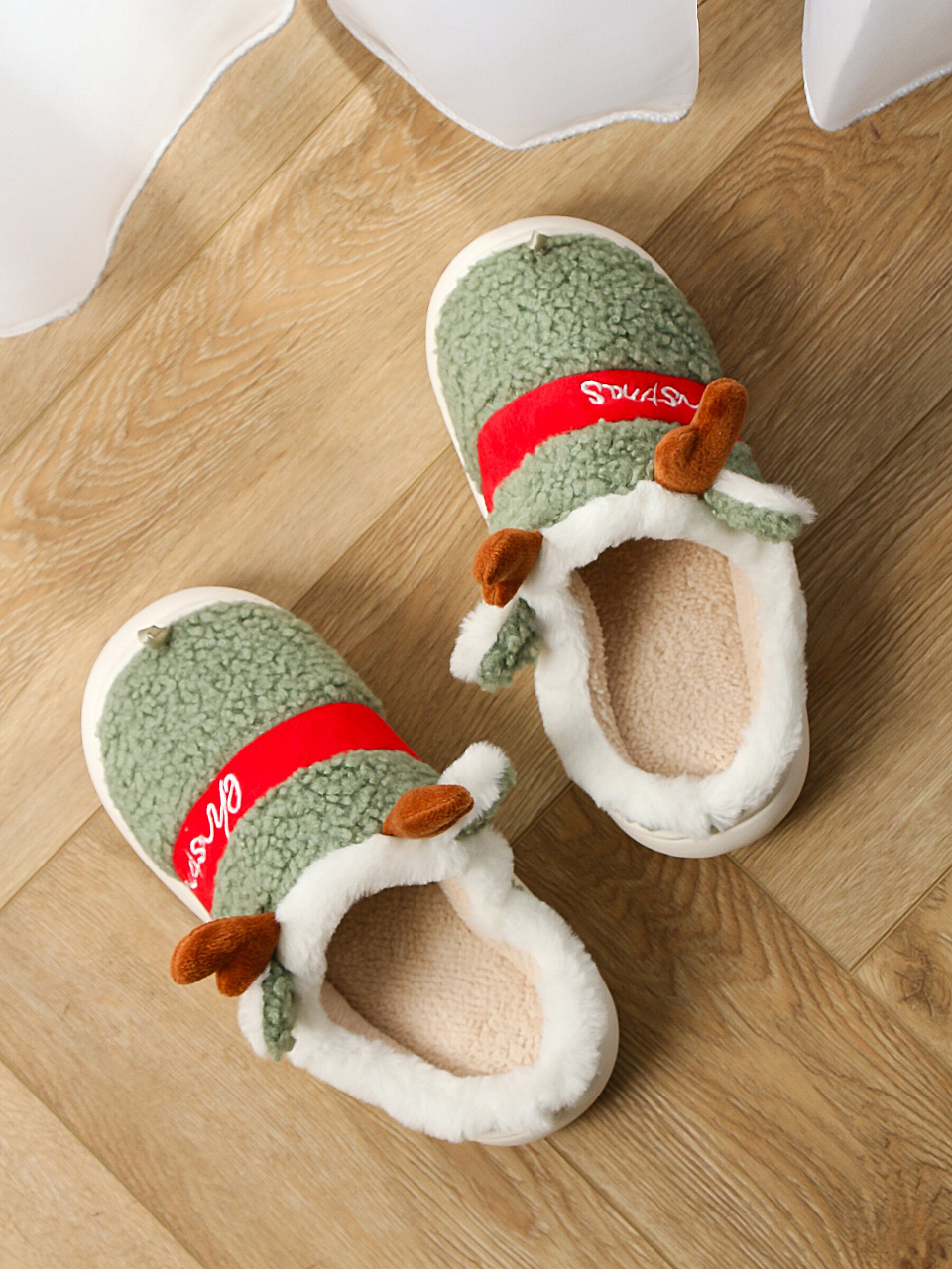 - Яркий новогодний дизайн — создаёт атмосферу праздника и выделяет среди обычных домашних тапок