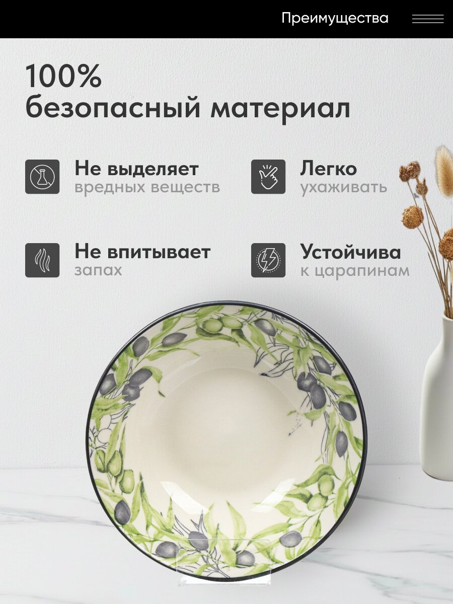 Оформите заказ на фарфоровую суповую тарелку «Оливки» прямо сейчас — получите быструю доставку, гарантию качества и стильную посуду для любой кухни.