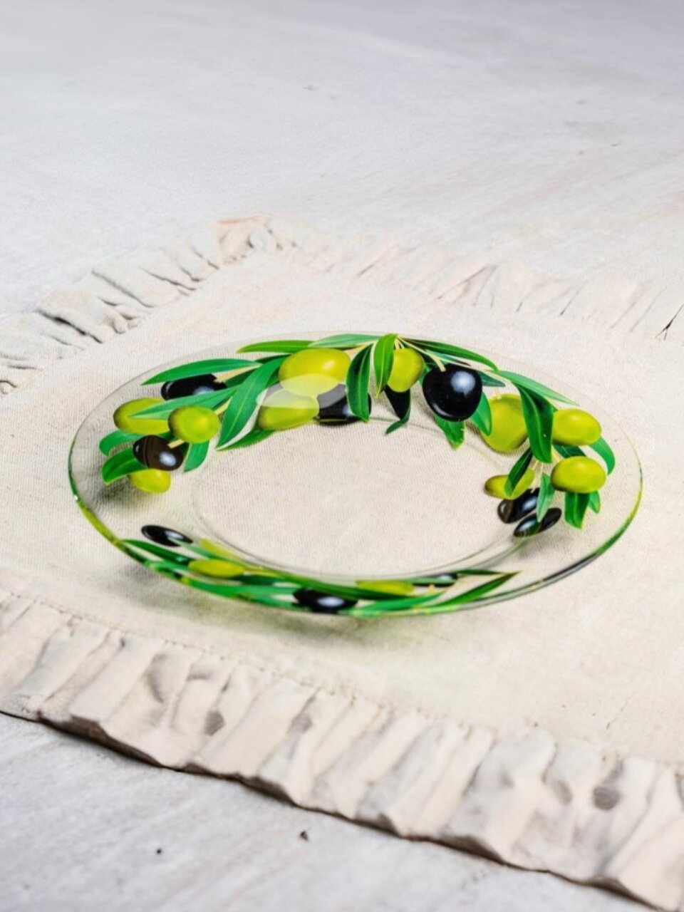 Тарелка сервировочная стеклянная 19.5 см «Оливки» — стильное решение для сервировки, подходит для дома, дачи и подарка. Устойчивость к мытью и СВЧ.