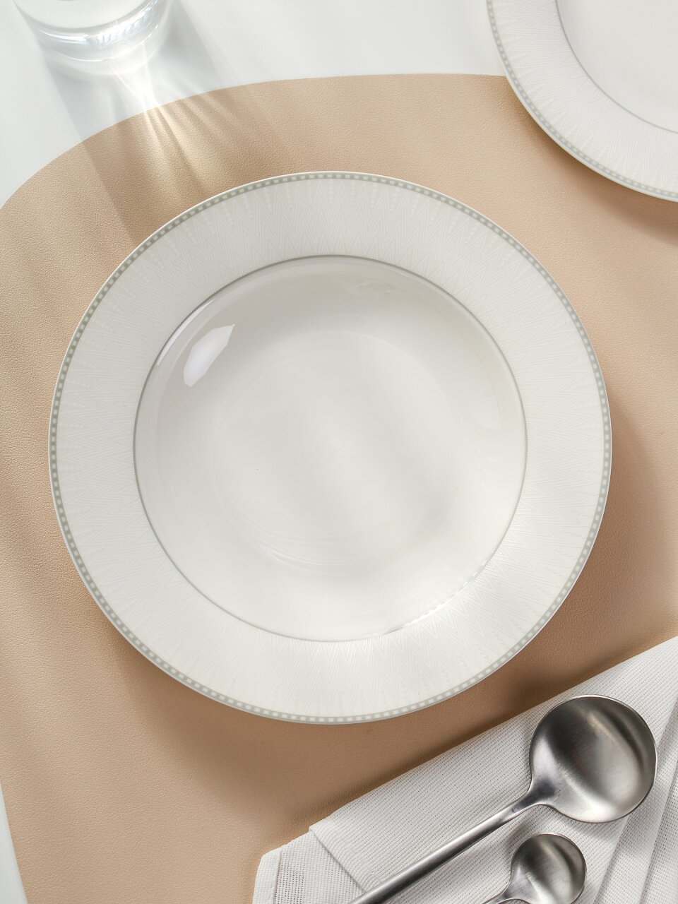 - Оптимальный диаметр 23 см, плотный фарфор, устойчивый к сколам — долговечность и практичность.