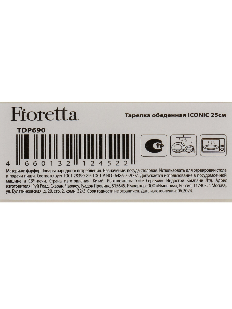 Вы можете приобрести «Тарелка обеденная, фарфор, 25 см, круглая, Iconic, Fioretta, TDP690» и другие товары в нашем интернет-магазине в Астрахани по низким ценам и с бесплатным самовывозом.