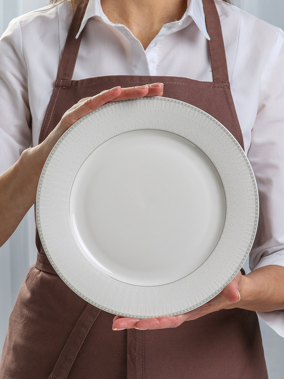 - Оптимальный размер 25 см, прочный фарфор, долговечность и простота ухода — подходит для посудомоечной машины и микроволновки