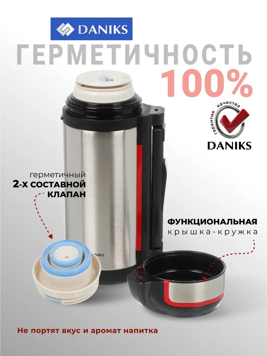 Термос Daniks SL-180GH 1.8 л из нержавеющей стали: сохраняет тепло и холод до 24 часов, универсальная горловина, удобно брать в город, спорт или на дачу.