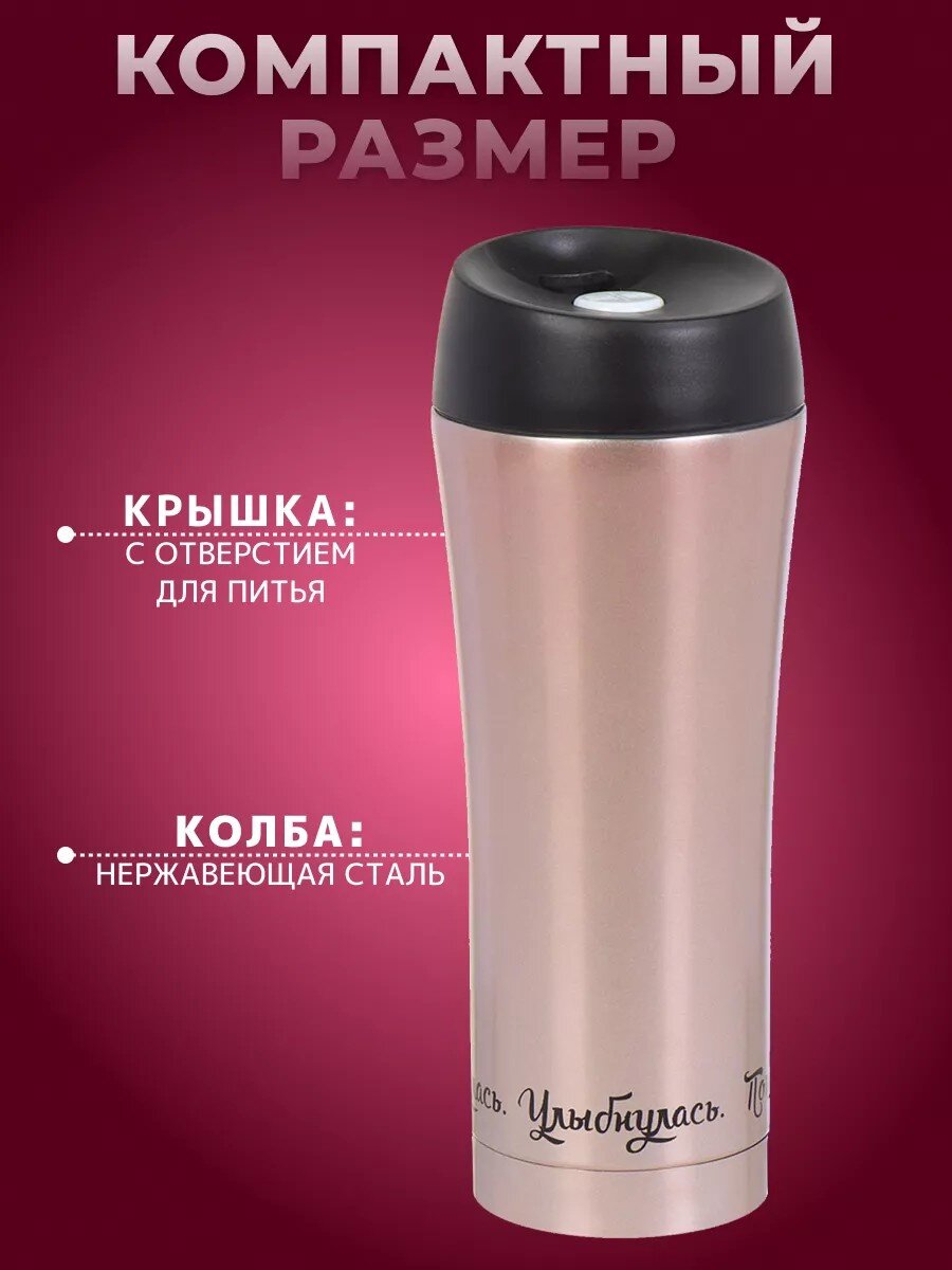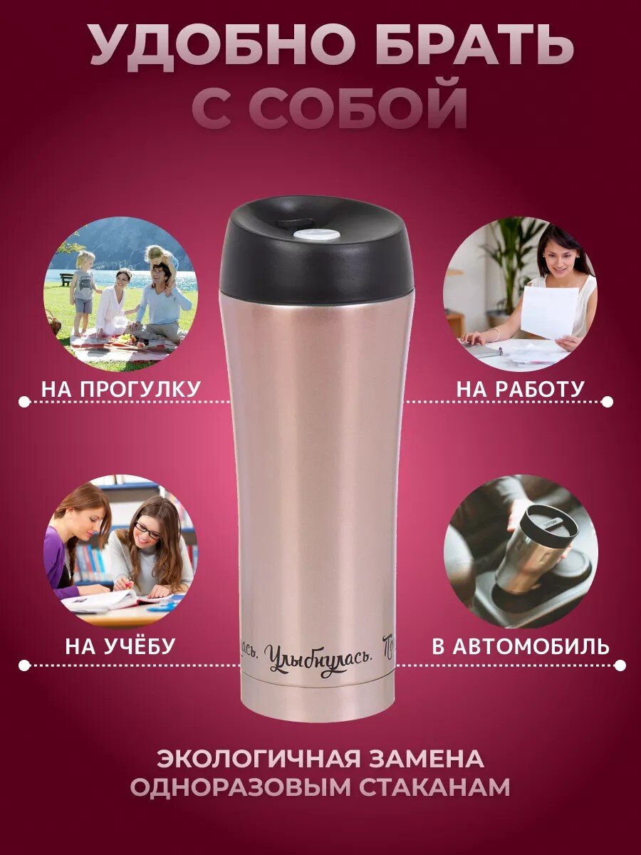 Термокружка Daniks «Женский стиль 2», 0.45 л: стильный аксессуар для города и авто, сохраняет температуру до 2 часов, ударопрочная, выгодная цена.