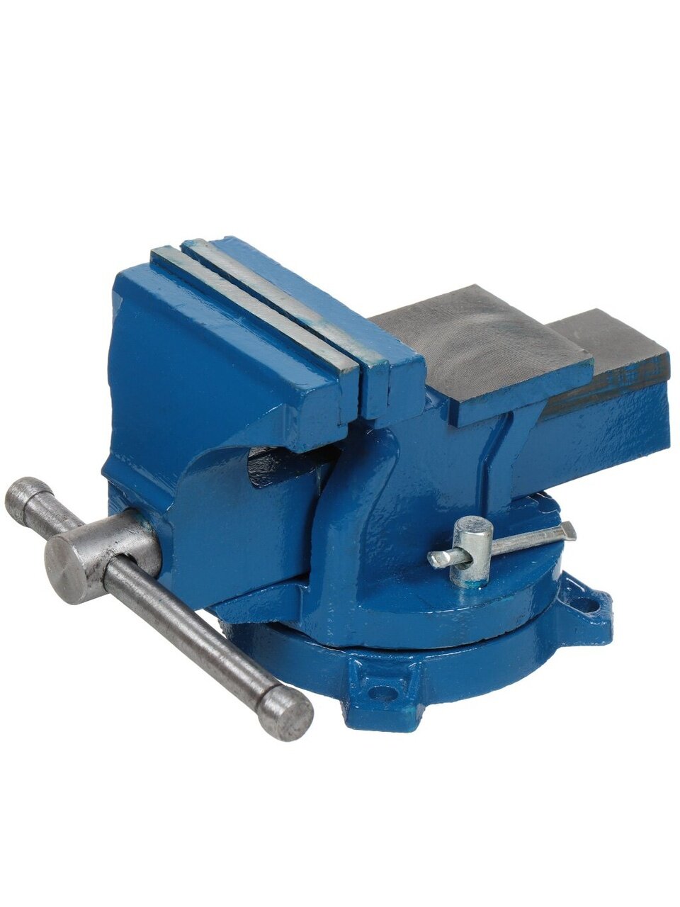 Тиски универсальные используются для фиксации предметов и их дальнейшей обработки. Оснащены наковальней и поворотной платформой. Поворотный механизм позволяет экономично использовать рабочее место. Материал: сталь.