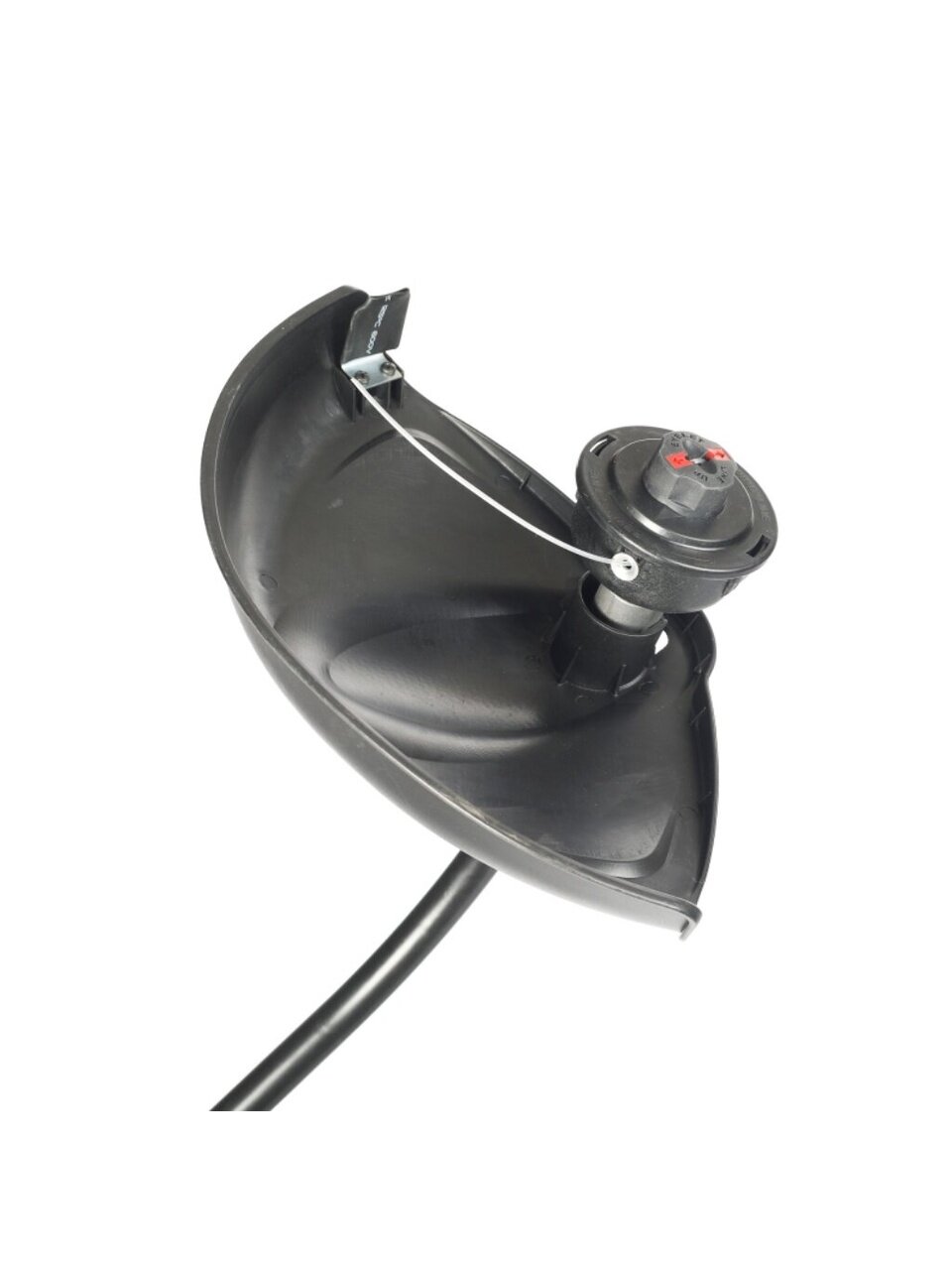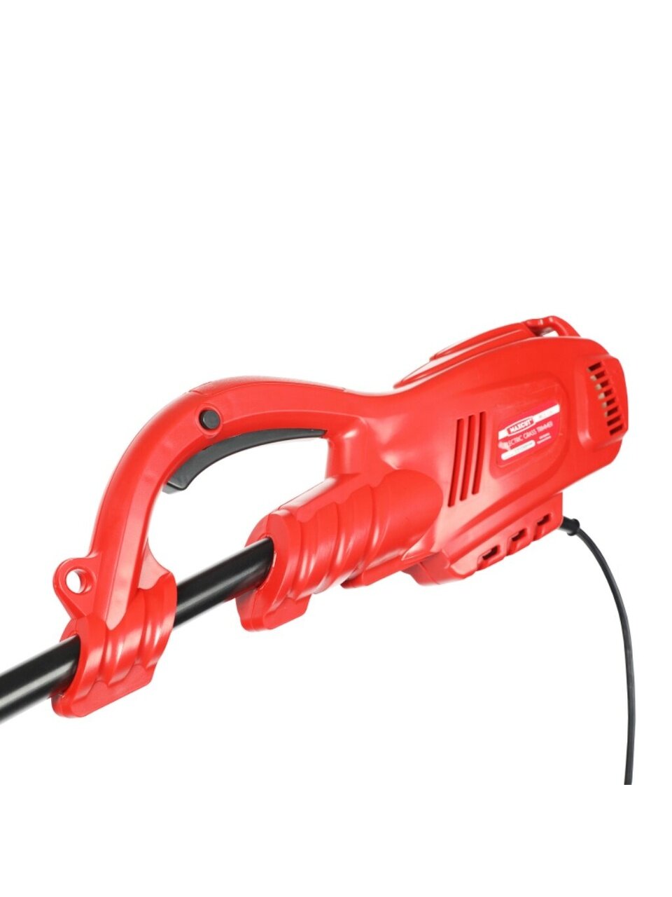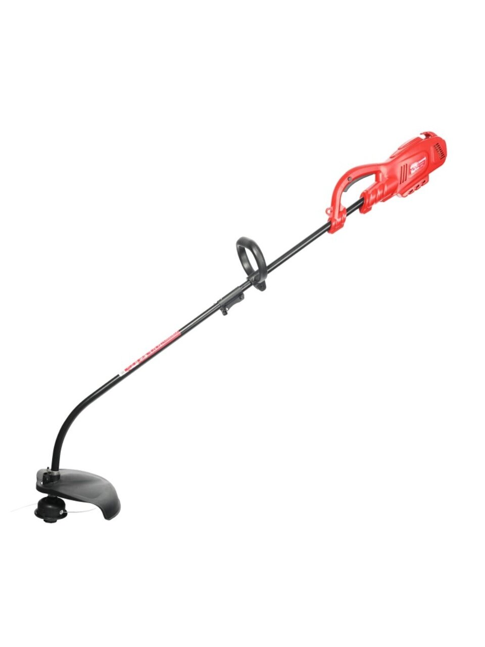 Электрический триммер используется для кошения травы. Штанга разбирается для комфортной транспортировки и хранения инструмента. Укомплектован наплечным ремнем, снижающим нагрузку на руки. Верхнее расположение двигателя обеспечивает защиту от выбросов при кошении, а следовательно более долгий срок службы.
