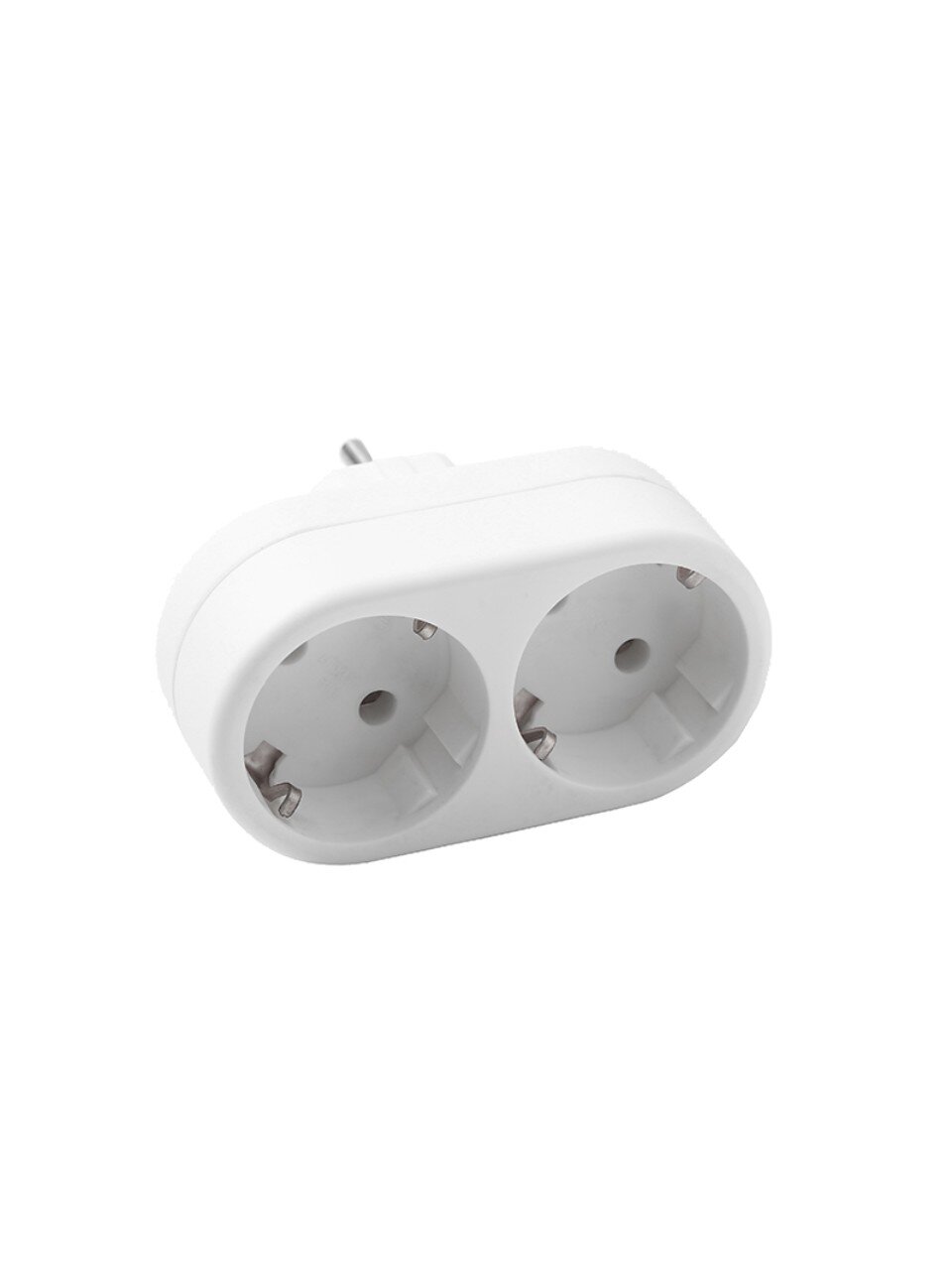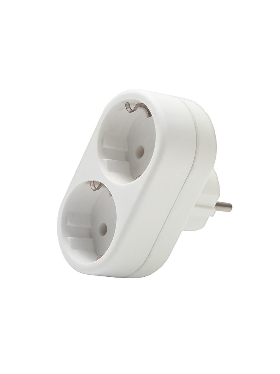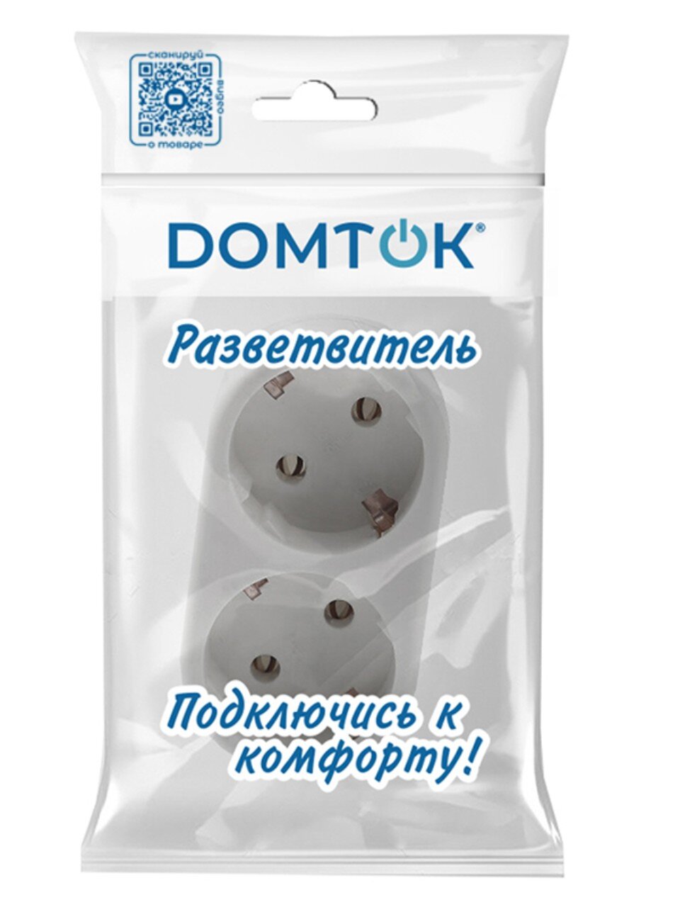 Разветвитель Domtok 2 гнезда с заземлением — безопасное подключение до 3500 Вт, компактный плоский корпус, подходит для дома, офиса и дачи.