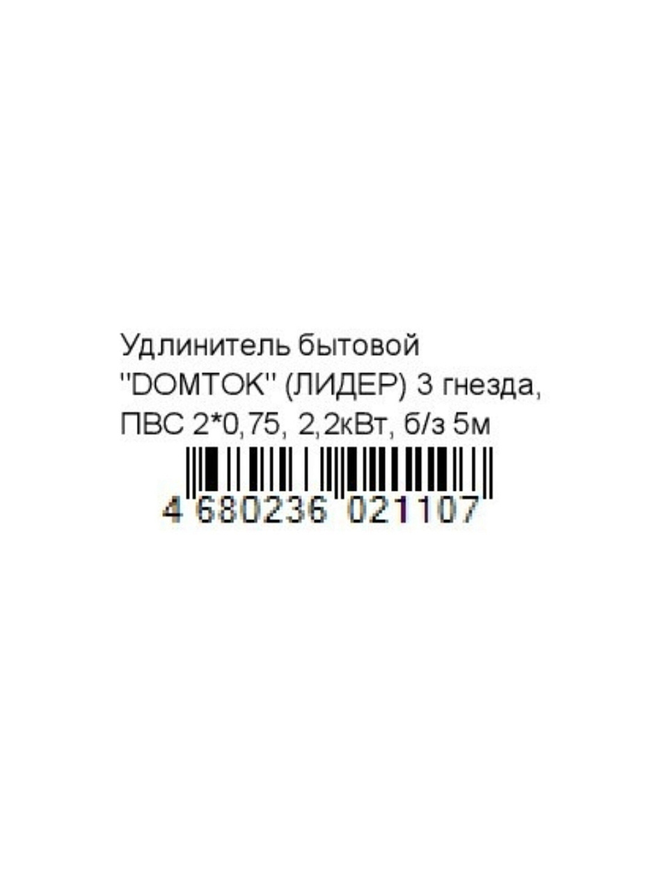 Удлинитель Domtok 2372: 3 гнезда, 5 метров, для дома и дачи. Надёжное решение без заземления, выдерживает нагрузку до 2200 Вт — удобно и безопасно.
