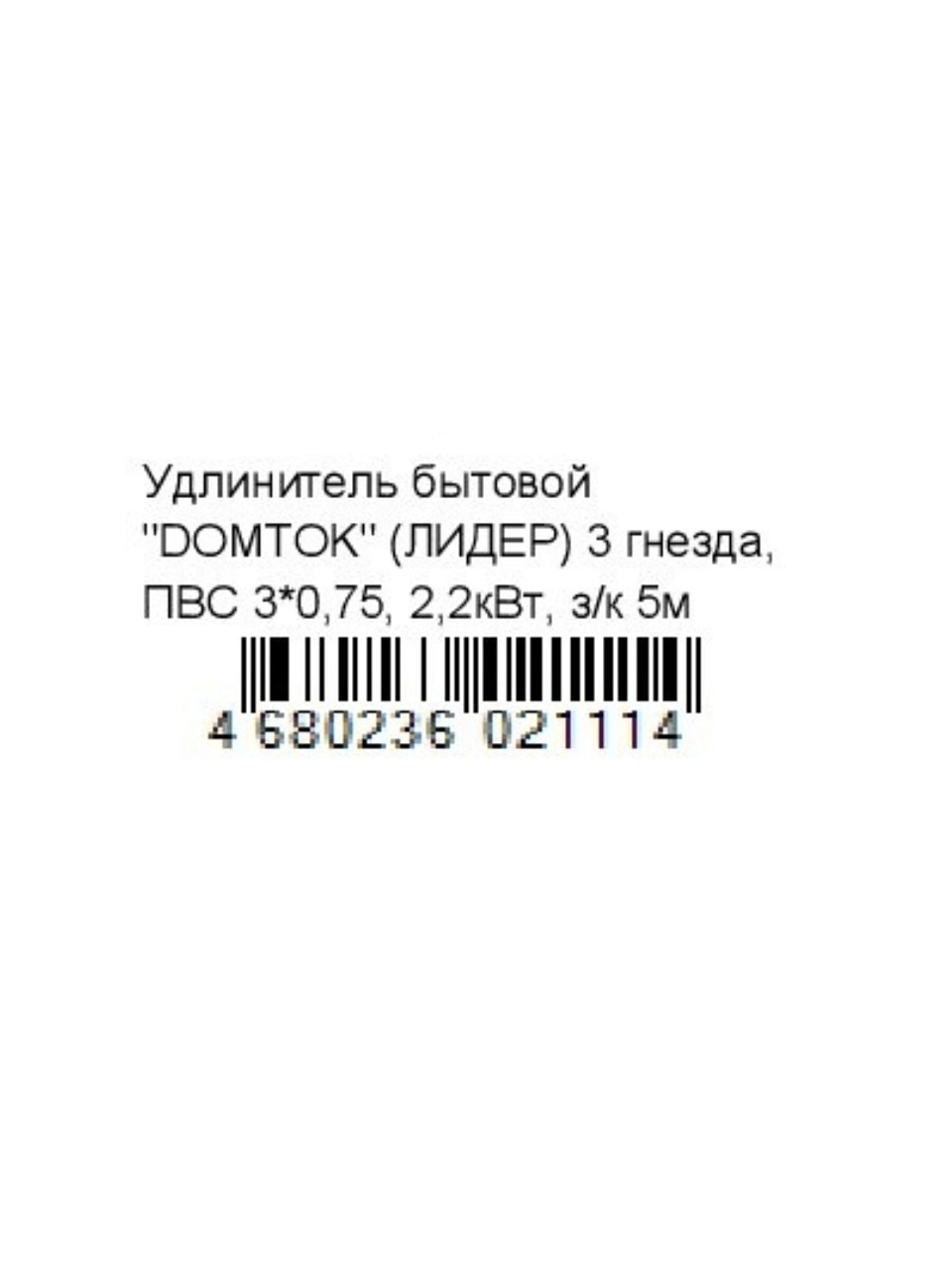 Удлинитель Domtok 2376: 3 розетки, 5 метров, с заземлением — безопасное решение для дома и дачи по выгодной цене.