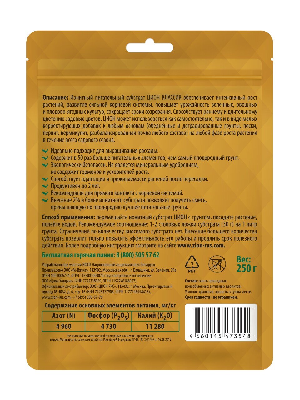 Вы можете приобрести «Удобрение Классик, универсальное, субстрат, минеральное, саше, 250 г, Zion» и другие товары в нашем интернет-магазине в Коврове по низким ценам и с бесплатным самовывозом.
