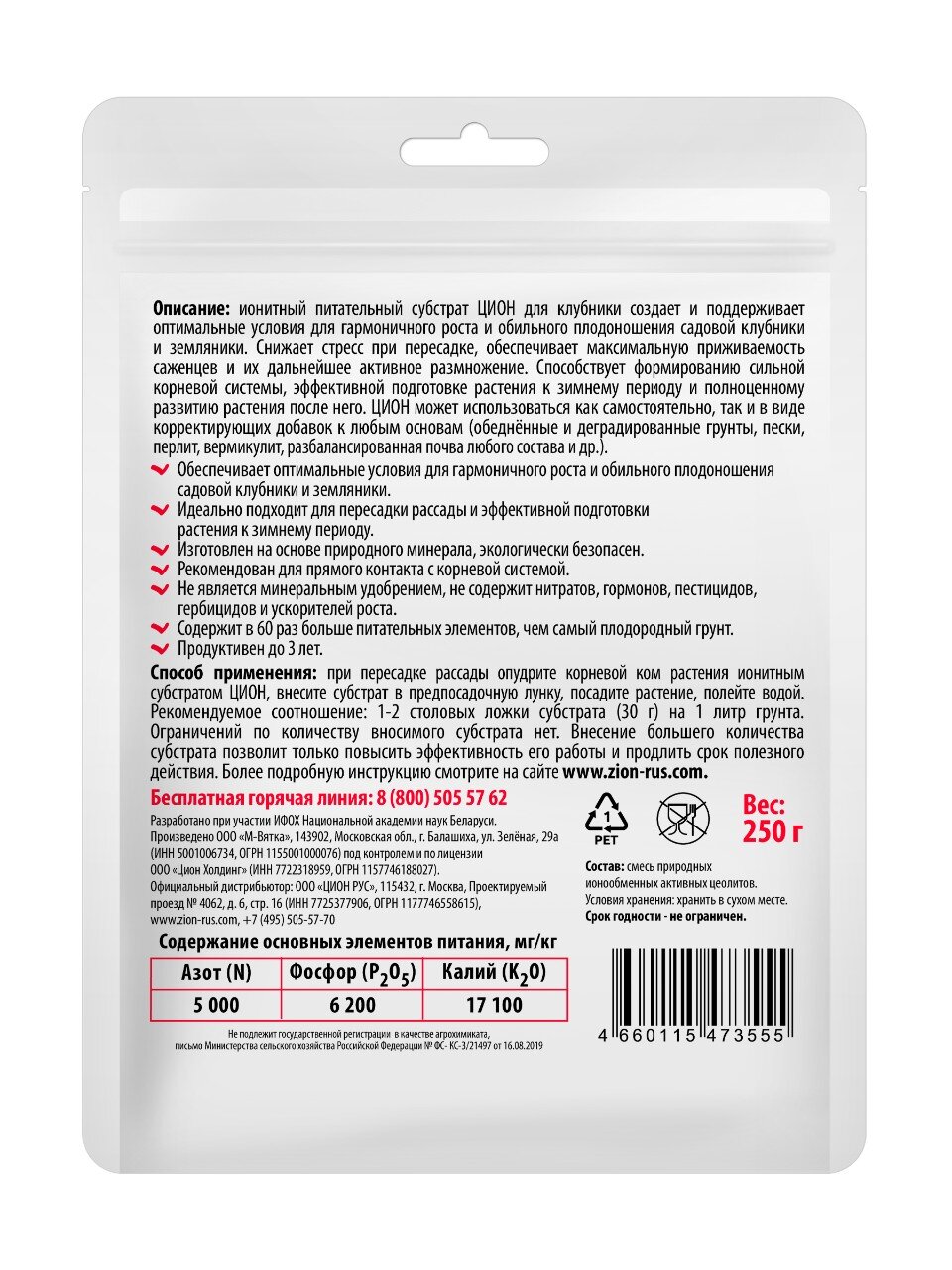 Ищете идеальное удобрение для вашей клубники? Минеральное удобрение Zion в саше на 250 г - это то, что нужно для здорового роста и обильного плодоношения. Специально разработано для клубники, оно обеспечивает растения всеми необходимыми питательными веществами в весенне-летний период.