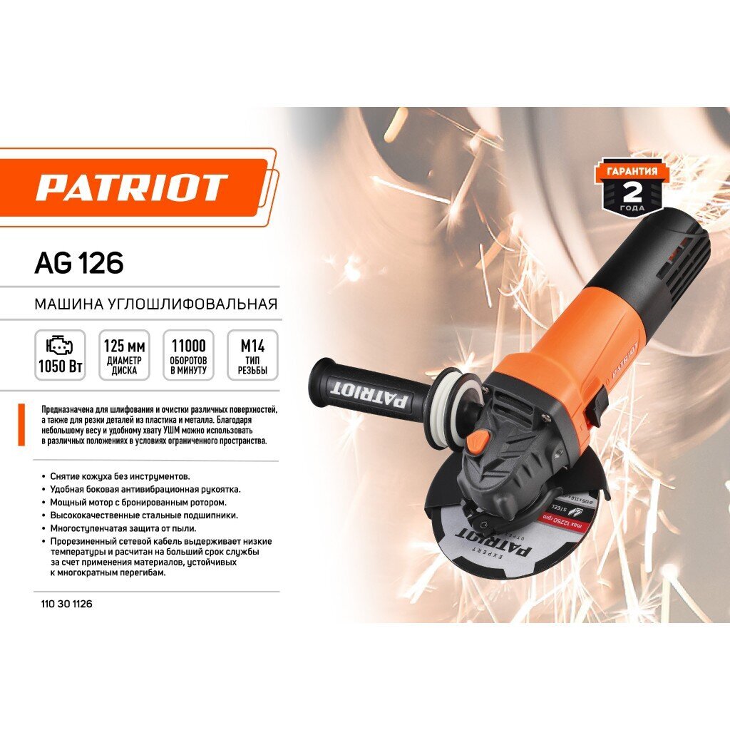 УШМ Patriot представляет собой надежный и универсальный инструмент, который станет отличным выбором для тех, кто ценит качество, производительность и комфорт в работе.