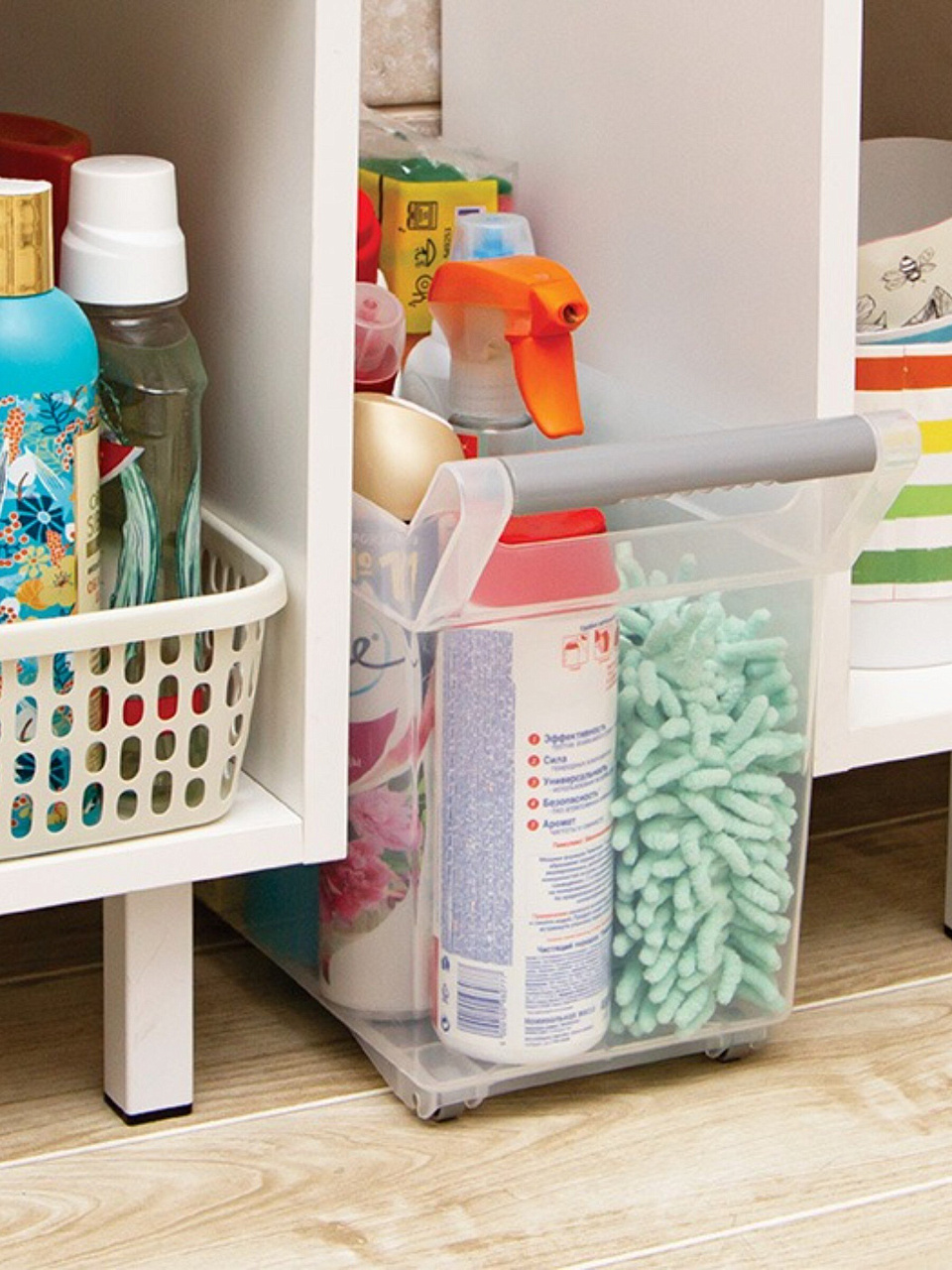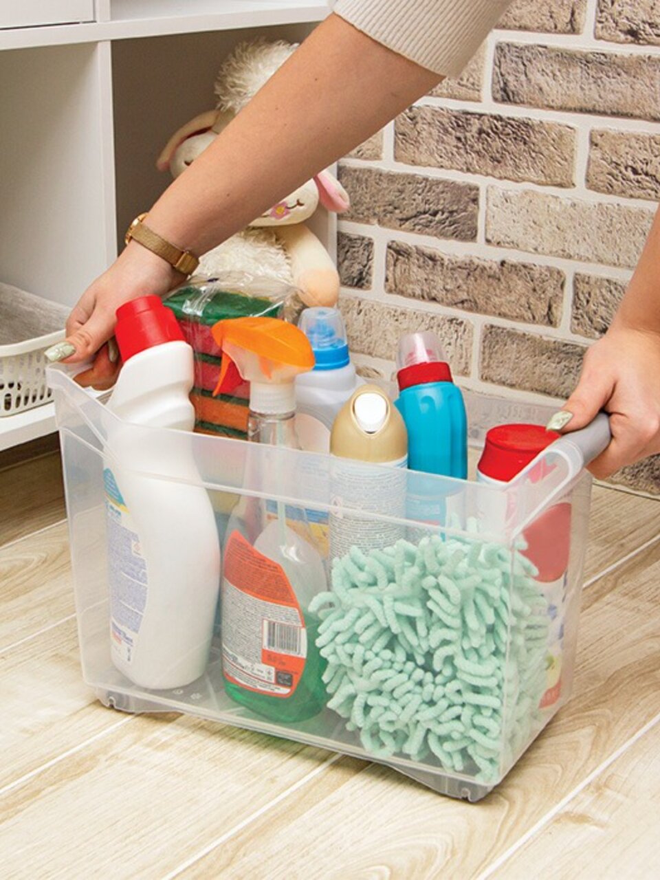 Благодаря колесам и ручке вы легко перемещаете контейнер даже при полной загрузке, экономите силы и время на уборке и организации пространства.